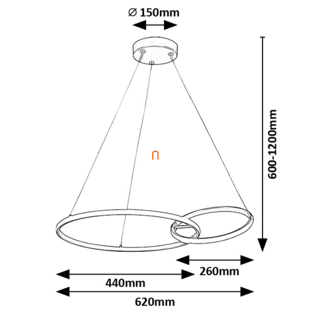 Az Emilion Rábalux 72296 függesztett LED lámpa minimál stílusban készült, modern lakásvilágítási megoldás. A lámpatest fém és szilikon anyagokból épül fel, melyek tartósságot és letisztult megjelenést biztosítanak. A termék fekete, arany és fehér színben érhető el, így többféle enteriőrbe is illeszthető. A beépített LED modul 36 W névleges teljesítményt biztosít, amely 2150 lumen fényáramot ad le, hidegfehér, 4000 K színhőmérséklettel. A lámpa energiaosztálya G, átlagos élettartama 20 000 óra. A lámpatest IP20 védettséggel rendelkezik, kizárólag beltéri használatra ajánlott. A termék 230 V névleges feszültséggel működik, méretei 620 mm hosszúság, 440 mm szélesség és 1200 mm magasság. A csomagolás méretei: 66 mm szélesség, 44 mm hosszúság, 120 mm magasság. A lámpa fényforrást tartalmaz, a LED modul nem cserélhető.