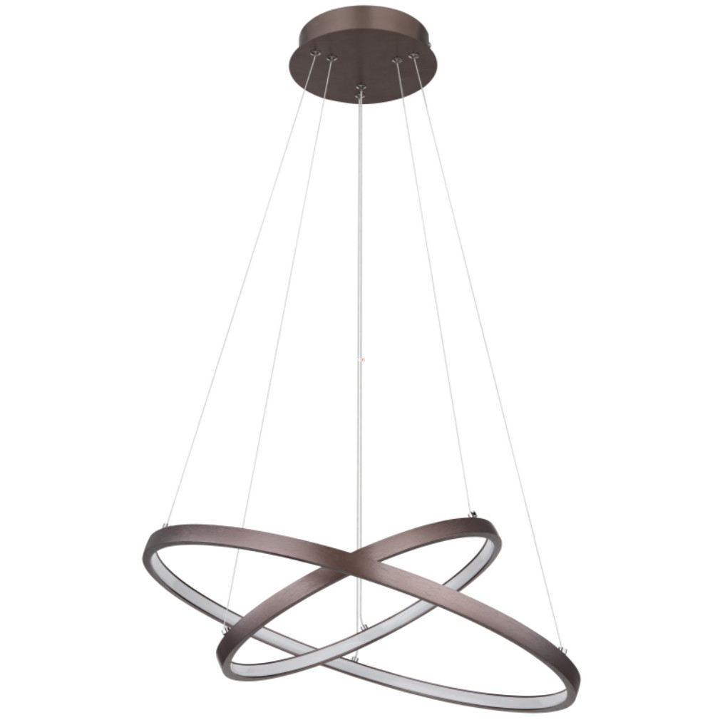 A Ralph Globo 67192-42BR modern stílusú függesztett LED lámpa letisztult formavilággal és barna színű, műanyag-fém kombinációjú lámpatesttel rendelkezik. A 42 W teljesítményű, integrált LED modul 1500 lumen fényáramot biztosít, melegfehér (3000 K) színhőmérséklettel. A lámpa falikapcsolóval szabályozható, beépített memóriafunkcióval rendelkezik, amely megőrzi a beállított fényerőt. A termék 510 mm átmérővel és 1200 mm maximális magassággal szerelhető fel, IP20 védettségi besorolása beltéri használatra teszi alkalmassá. A csomagolás mérete 54x54x8 cm, a lámpa tömege 1,5 kg. A fényforrás tartozékként LED modulként érkezik, további izzó beszerzése nem szükséges.