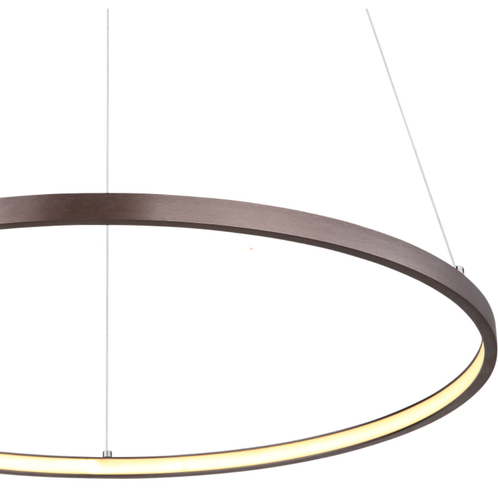 A Ralph Globo 67192-29BR függesztett LED lámpa modern világítási megoldást kínál lakóterek számára. A lámpatest barna színű, műanyag és fém anyagok kombinációjával készült, amely tartósságot és esztétikus megjelenést biztosít. A beépített 29 W teljesítményű LED modul 1400 lumen fényáramot bocsát ki, melegfehér, 3000 K színhőmérséklettel, amely kellemes légkört teremt. A lámpa átmérője 605 mm, magassága 1200 mm, így ideális nagyobb helyiségek megvilágítására is. A termék IP20 védettségi besorolással rendelkezik, amely beltéri használatra teszi alkalmassá. A csomagolás méretei: 62 cm szélesség, 6 cm hosszúság és 62 cm magasság, a termék tömege 1,5 kg. A Ralph Globo 67192-29BR logisztikai kóddal ellátott modell a Globo gyártótól származik.