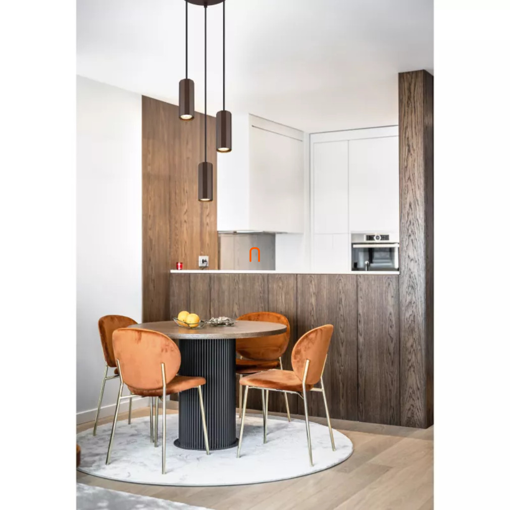 A James Globo 57919-3H függesztett spot lámpa sötét bronz színben három darab GU10 foglalattal rendelkezik, melyekhez tetszőleges, cserélhető fényforrás illeszthető. A lámpatest fém és alumínium anyaghasználata biztosítja a tartósságot és a modern megjelenést. A termék 230 V névleges feszültséggel működik, védettségi besorolása IP20, így beltéri használatra alkalmas. Az átmérője 210 mm, magassága 1200 mm, tömege 1,36 kg. A csomagolás méretei: 14 cm szélesség, 23 cm hosszúság és 23 cm magasság. A fényforrásokat a csomag nem tartalmazza, így a fényáram, színhőmérséklet és teljesítmény a választott izzótól függ. A termék logisztikai kódja 57919-3H, gyártója a Globo.