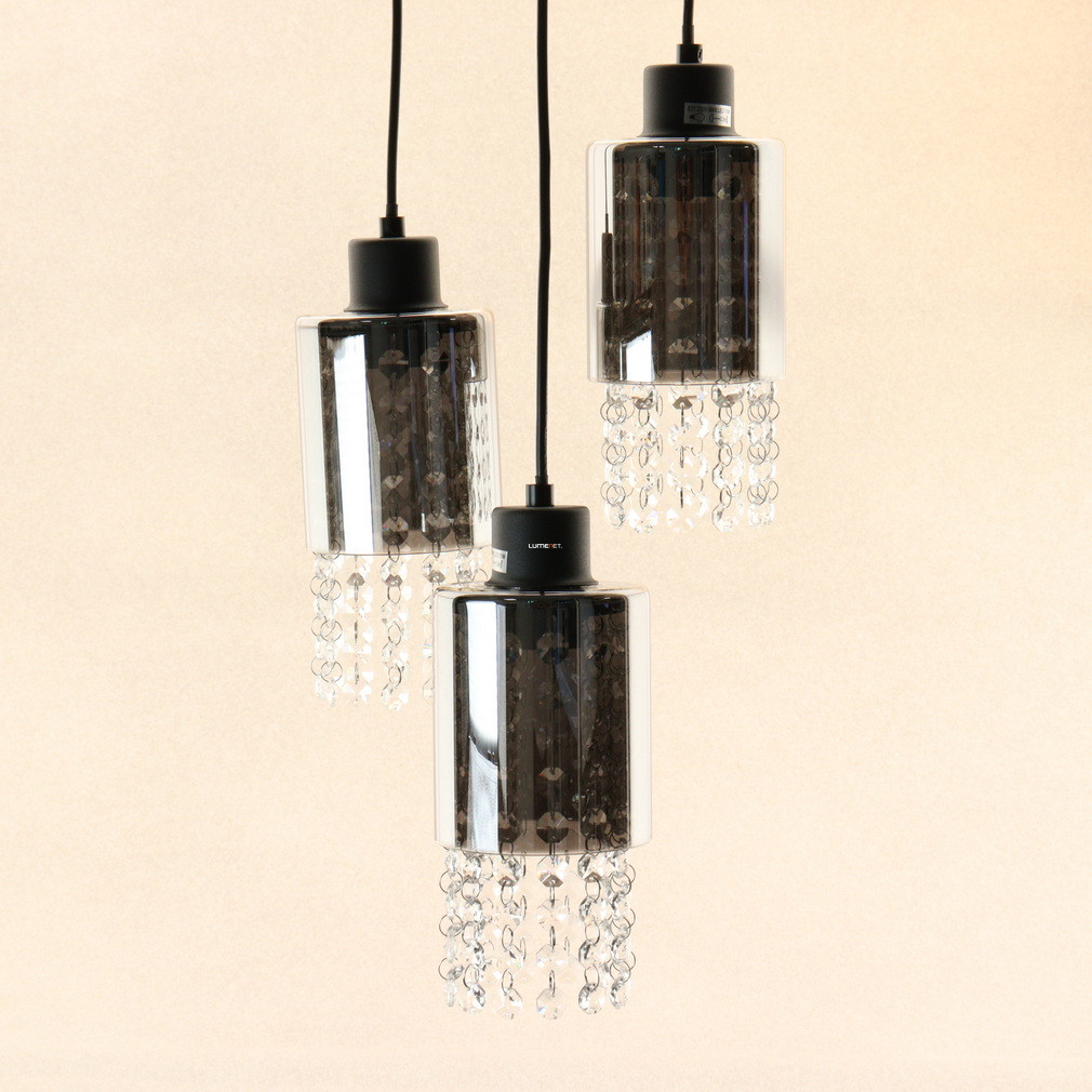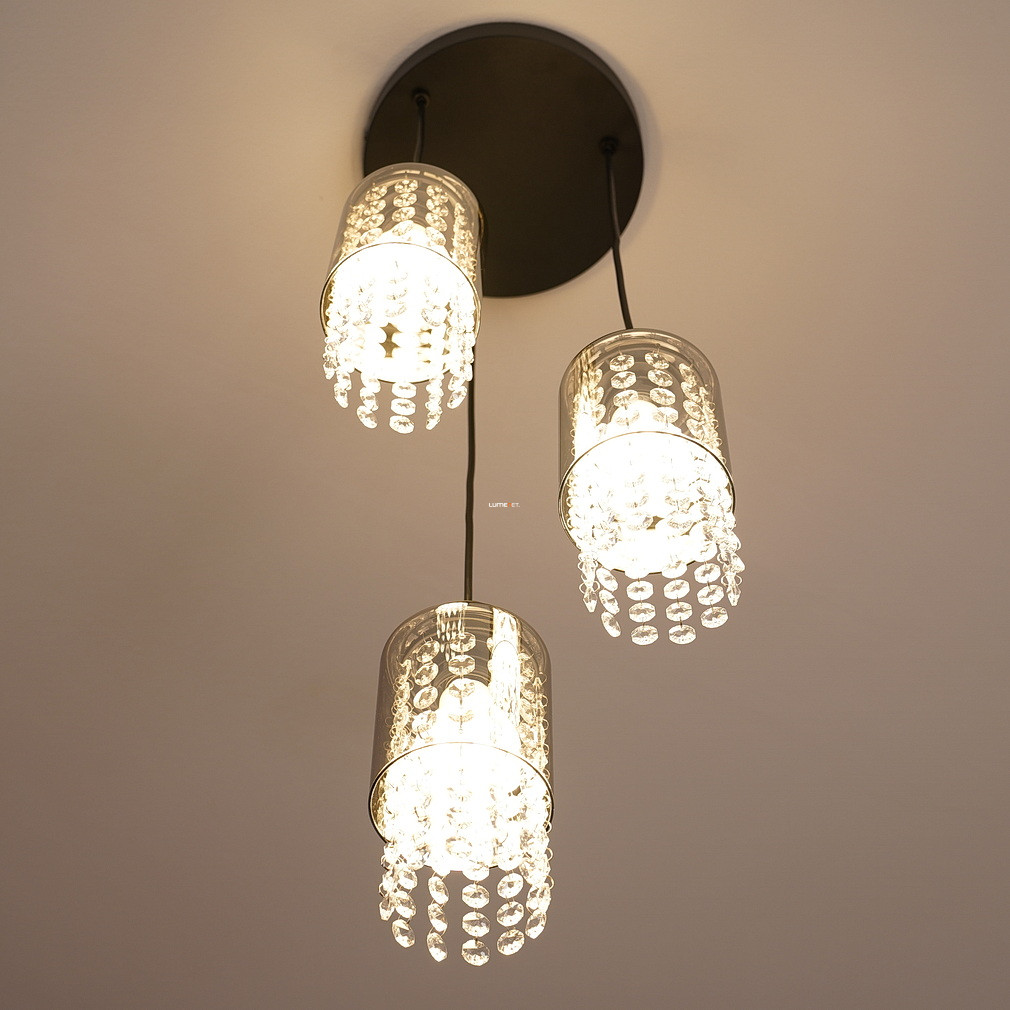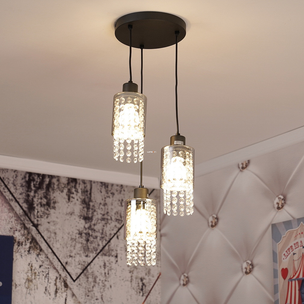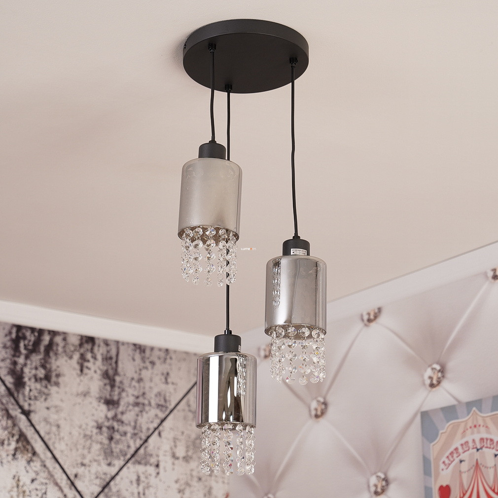 Függesztett üveg lámpa kristály láncokkal, 3 foglalattal - Backey Globo 15799-3H