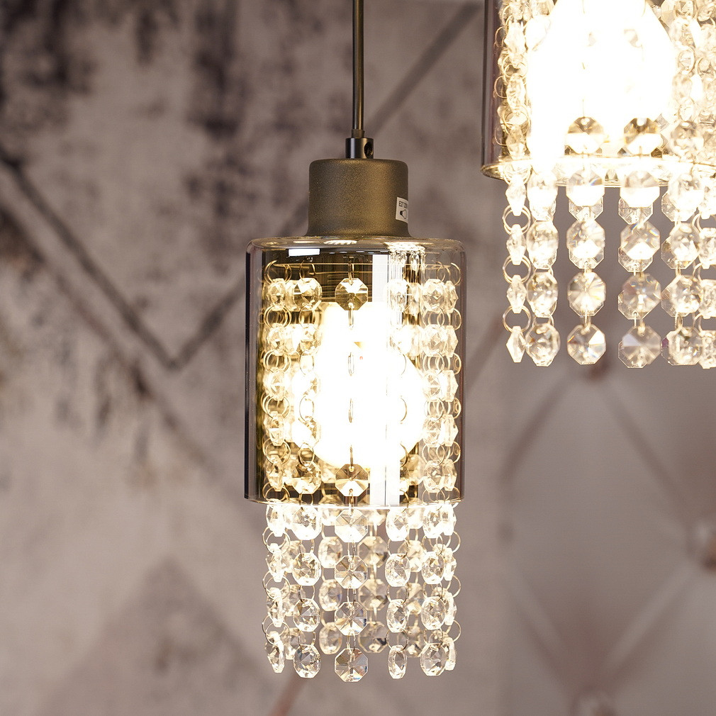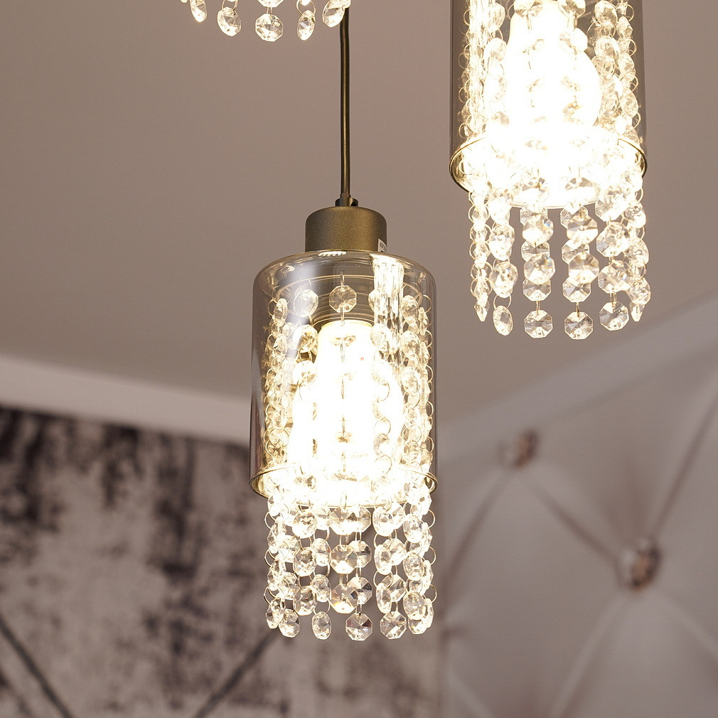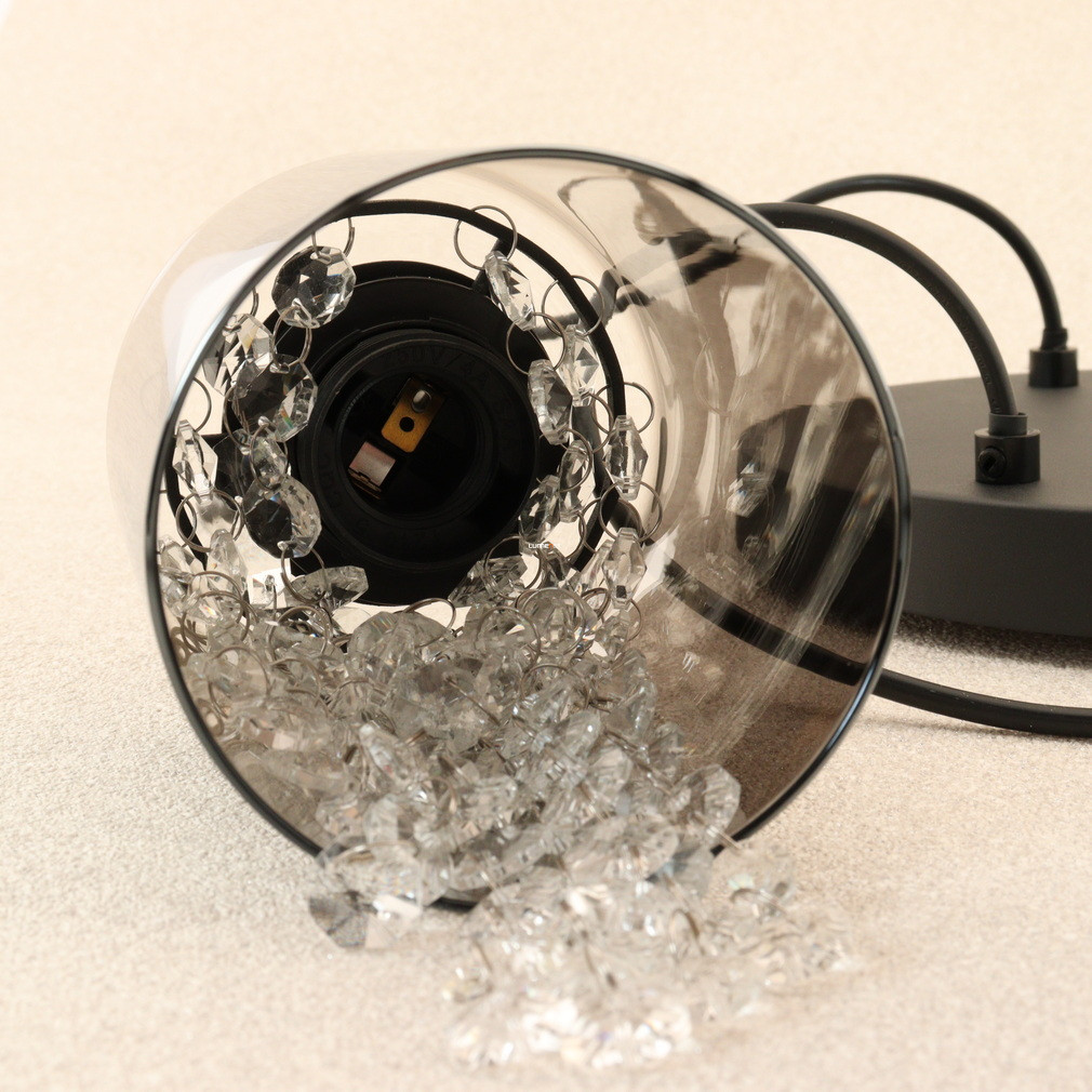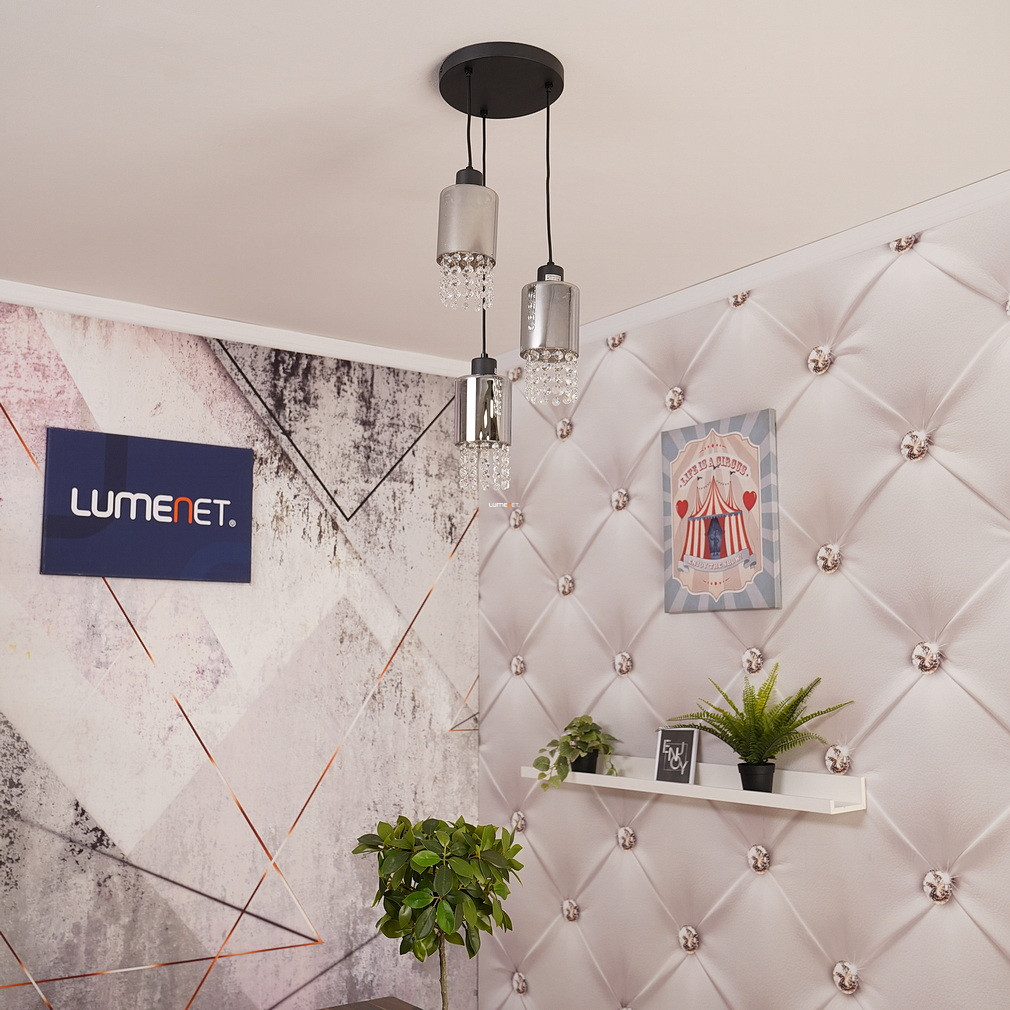 Függesztett üveg lámpa kristály láncokkal, 3 foglalattal - Backey Globo 15799-3H