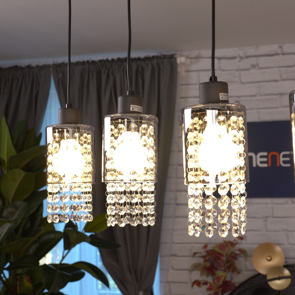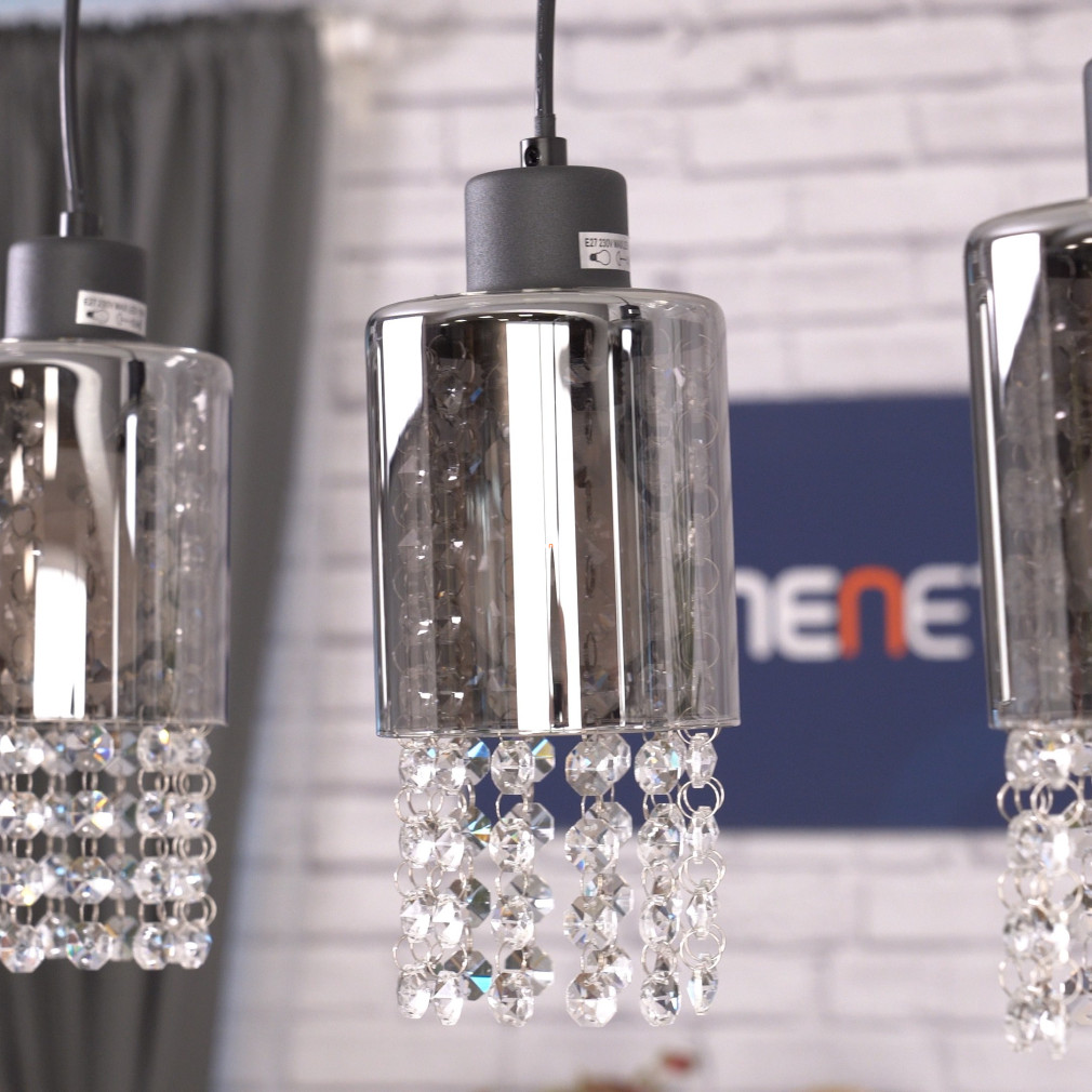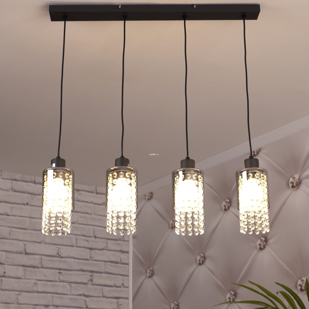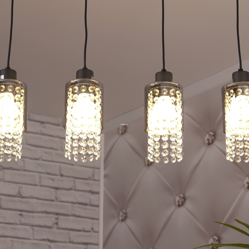 Függesztett üveg lámpa kristály láncokkal, 4 foglalattal - Backey Globo 15799-4H