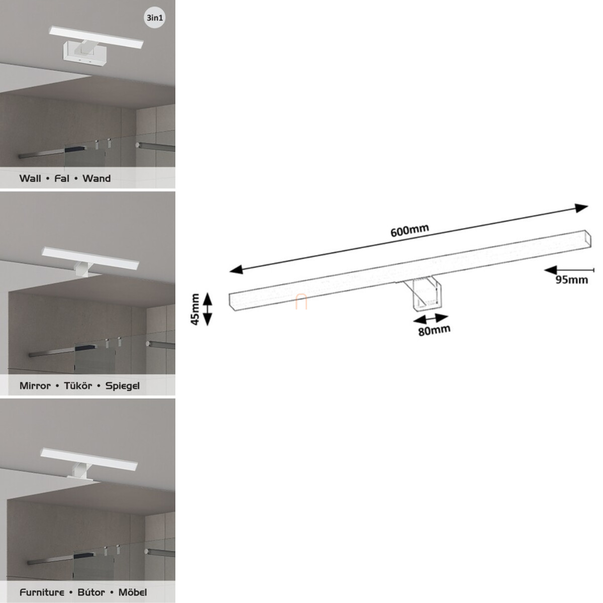 Fürdőszobai fali LED lámpa - Oliro Rábalux 75049 4000 K, 1000 lm, 9 W