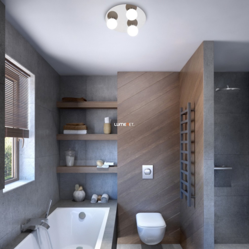 Ez a modern, opál és ezüst színű fürdőszobai mennyezeti lámpa három foglalattal tökéletes választás, hogy stílusosan világítsd meg a fürdőszobádat.