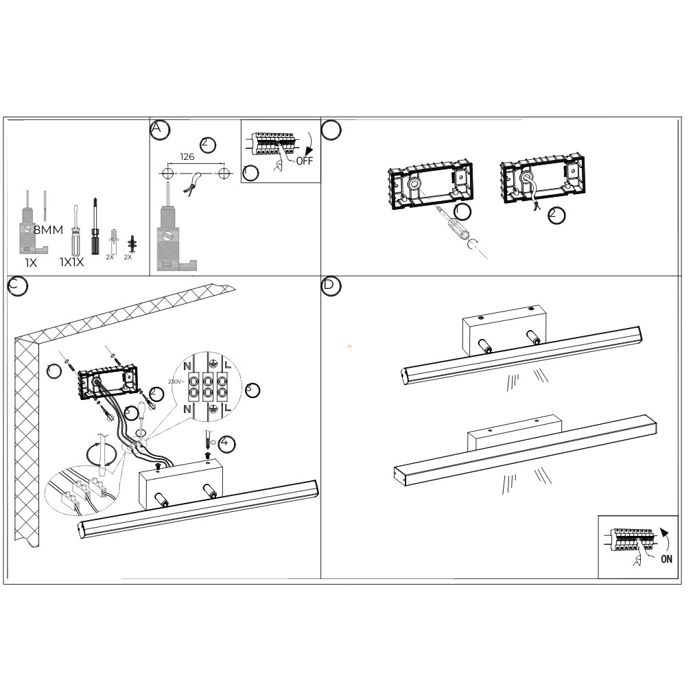 A fürdőszobai tükörvilágító LED lámpa 18 W teljesítményével és 1850 lumen fényáramával biztosítja a megfelelő megvilágítást a mindennapi tevékenységekhez. A hidegfehér fény (4000 K) friss és tiszta megjelenést kölcsönöz a fürdőszobának, ami különösen hasznos a reggeli készülődés során. A lámpa 63 cm hosszúságú, így ideális méretű a legtöbb tükör fölé. Az anyaga fém és műanyag, ami tartósságot és könnyű tisztíthatóságot biztosít. Az IP44 védettség garantálja, hogy a lámpa ellenáll a fröccsenő víznek, így biztonságosan használható párás környezetben is. A beépített LED modul hosszú élettartamot kínál, akár 20 000 órán keresztül, így nem kell aggódnod a fényforrás cseréje miatt. A lámpa nem szabályozható, de a hidegfehér fény elegendő fényt biztosít a fürdőszobai tevékenységekhez. A lámpa felszerelése egyszerű, és nem igényel különleges szerszámokat vagy szakértelmet. A modern és funkcionális stílusú lámpa fekete és fehér színben kapható, így könnyen illeszkedik bármilyen fürdőszobai dekorációhoz.