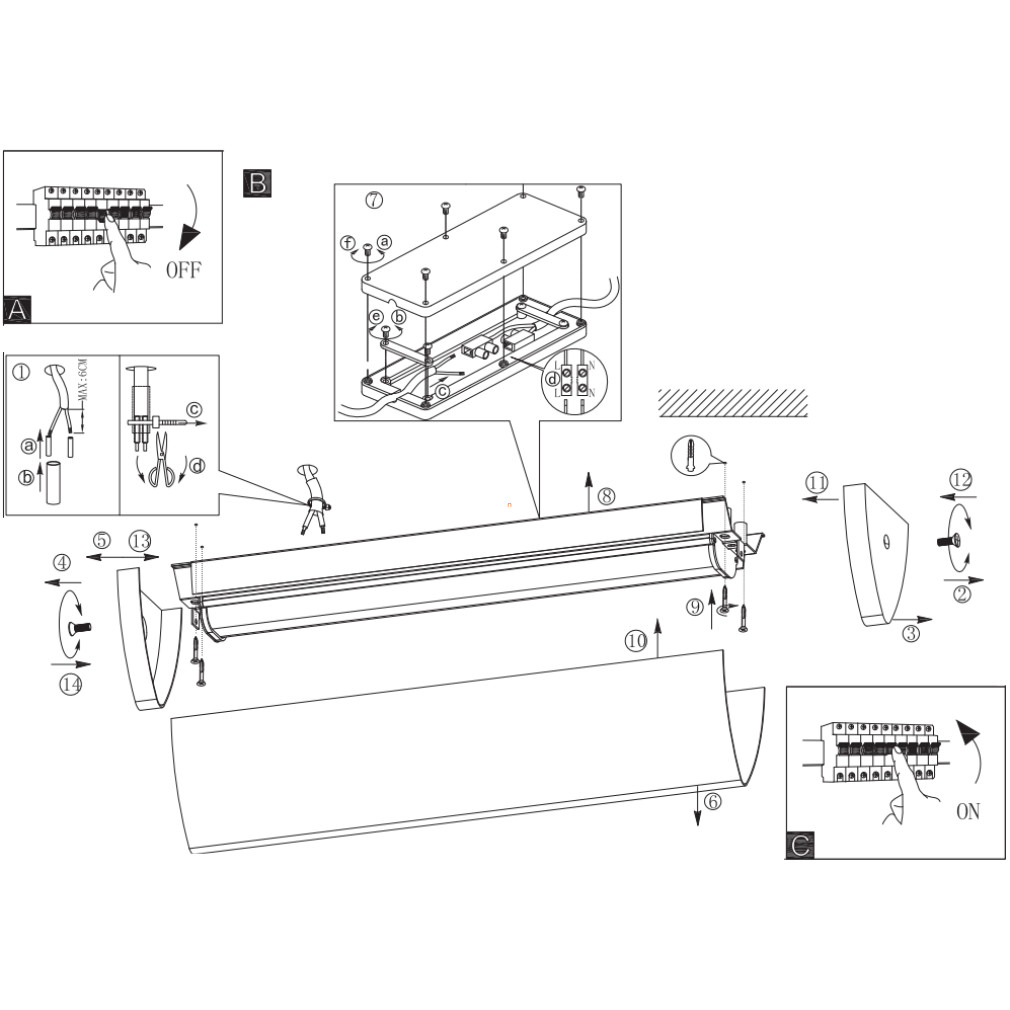 A Gita Eglo 94714 fürdőszobai tükörvilágító LED lámpa 24,3 W teljesítményű, modern kialakítású fali lámpatest, amelyet opál és ezüst színű fém és üveg anyaghasználat jellemez. A termék 90 cm hosszúságú, 7,5 cm szélességű és 7,5 cm magasságú, így ideális fürdőszobai tükrök megvilágítására. A beépített LED modul 1900 lumen fényáramot biztosít hidegfehér, 4000 K színhőmérsékletű fénykibocsátással, ami pontos és tiszta világítást eredményez. A lámpa nem szabályozható, védettségi szintje IP44, ezért fröccsenő víz ellen védett, így fürdőszobai használatra alkalmas. A termék tömege 1,91 kg, a csomagolás méretei 10 x 10 x 94 cm. A lámpatesthez a fényforrás tartozék, LED modul formájában.