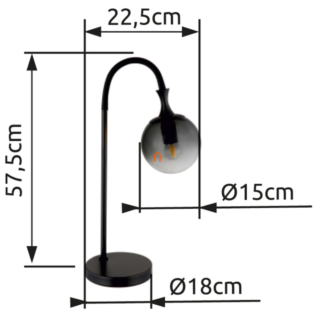 Füstszínű asztali lámpa, üveg, 57 cm - Dalton Globo 15885T - billenőkapcsolós, 1xE27 foglalattal, 230 V