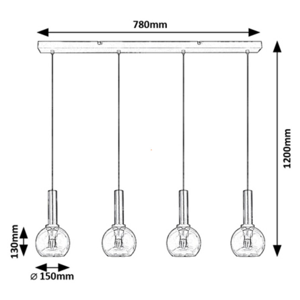 A Centio Rábalux 72174 füstszínű függesztett lámpa modern formavilágával és négy darab E27 foglalatával lehetőséget ad a fényforrások egyedi kiválasztására, így a világítás fényereje és színhőmérséklete a felhasználó igényeihez igazítható. A lámpatest fekete fém vázzal és füstszínű üveg burákkal készül, textil kábellel szerelve, amely esztétikus megjelenést és tartósságot biztosít. A termék 780 mm hosszúságú és 1200 mm magasságú, IP20 védettségi szinttel rendelkezik, beltéri használatra alkalmas. A csomag nem tartalmaz fényforrást, a lámpa tömege 2,585 kg. A Centio Rábalux 72174 ideális választás lakásvilágítási megoldásokhoz, ahol a modern design és a funkcionalitás egyaránt fontos.