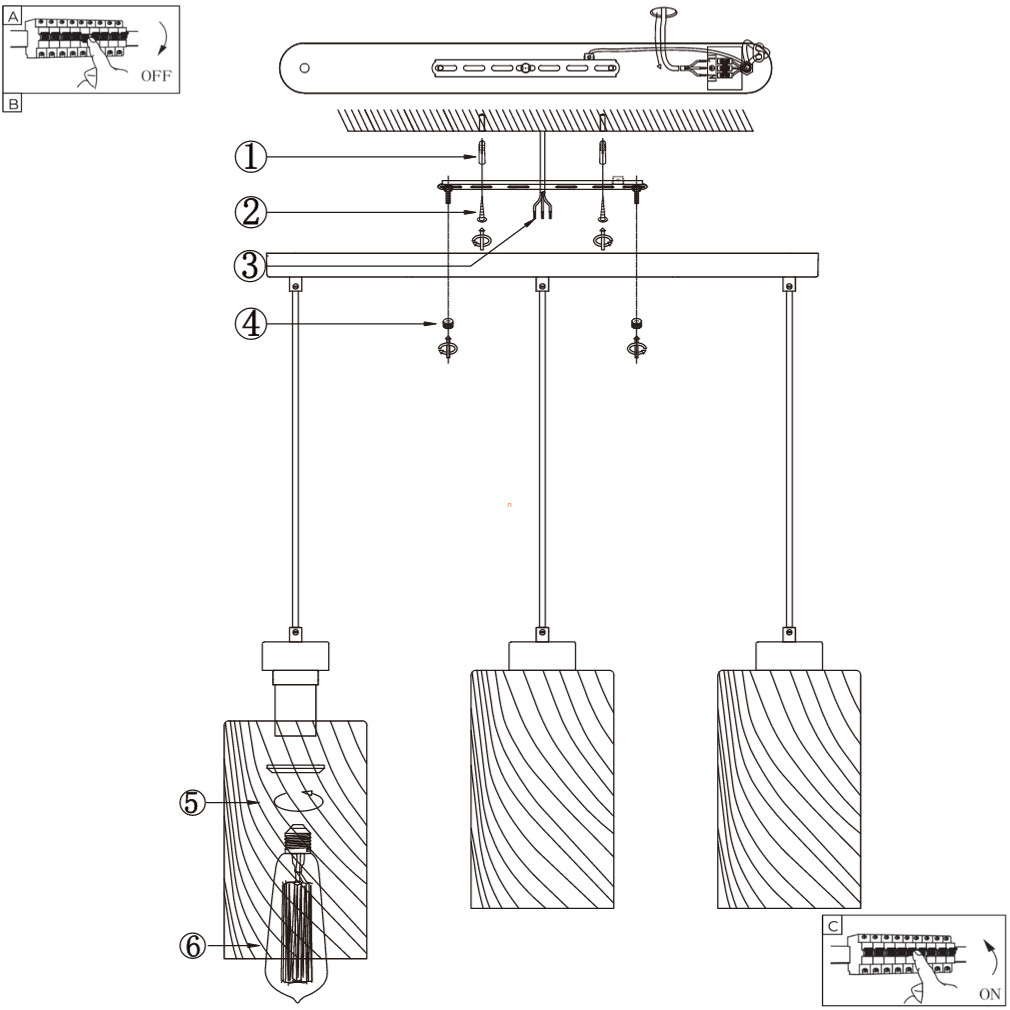 A gyártó nem mellékel fényforrást a csomagban, így azt külön kell megvásárolnod. A tökéletes látványért mi a filament típusú fényforrások használatát javasoljuk. A lámpa belógása 1800 mm, szélessége 670 mm, búráinak átmérője 150 mm, beépítési átmérője pedig 580 mm.