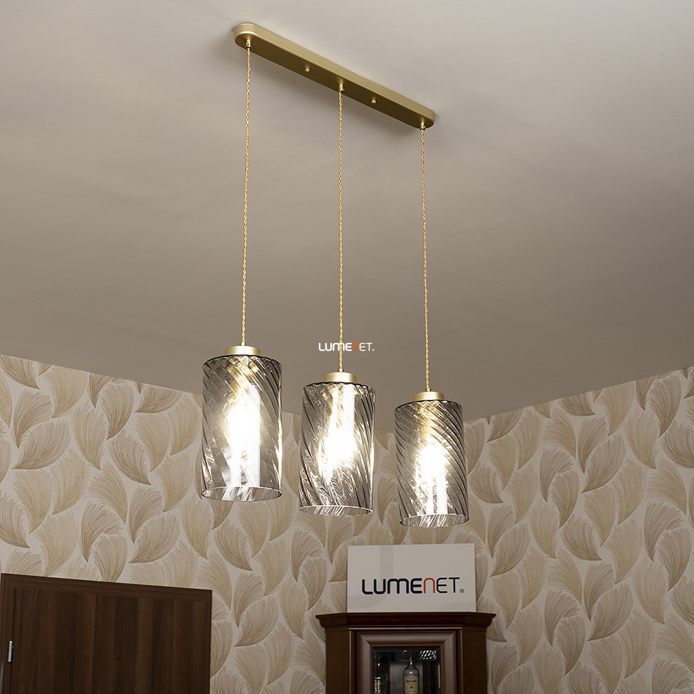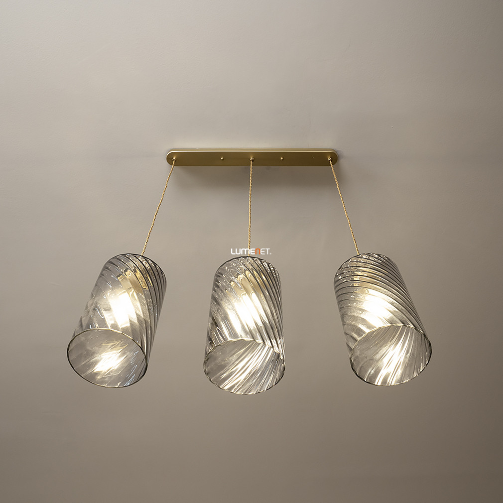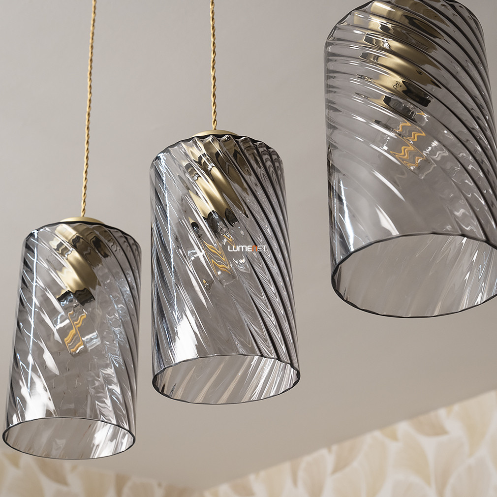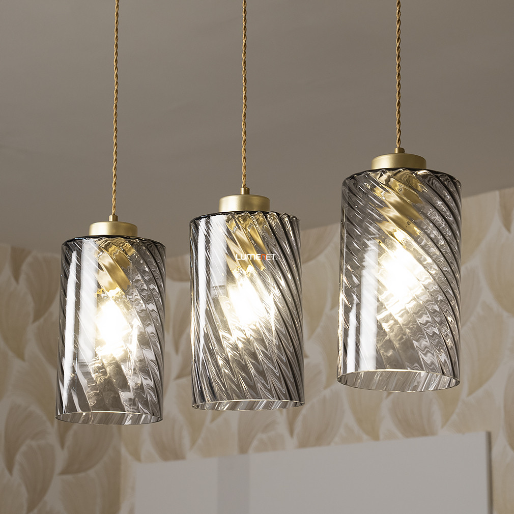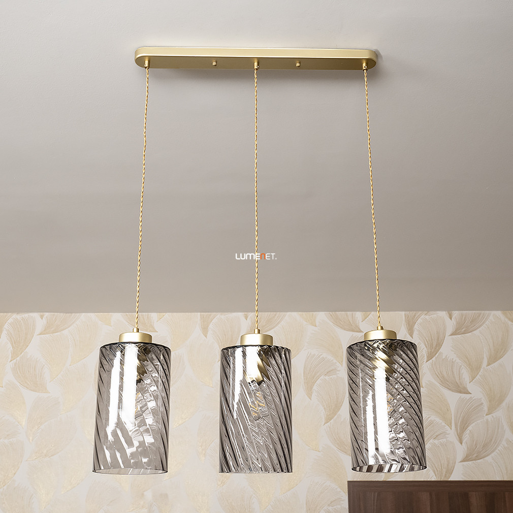 Füstszínű függesztett lámpa arany textilkábellel, 3 foglalattal - Sheila Rábalux 5229
