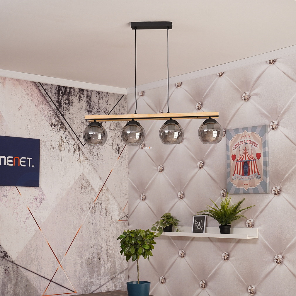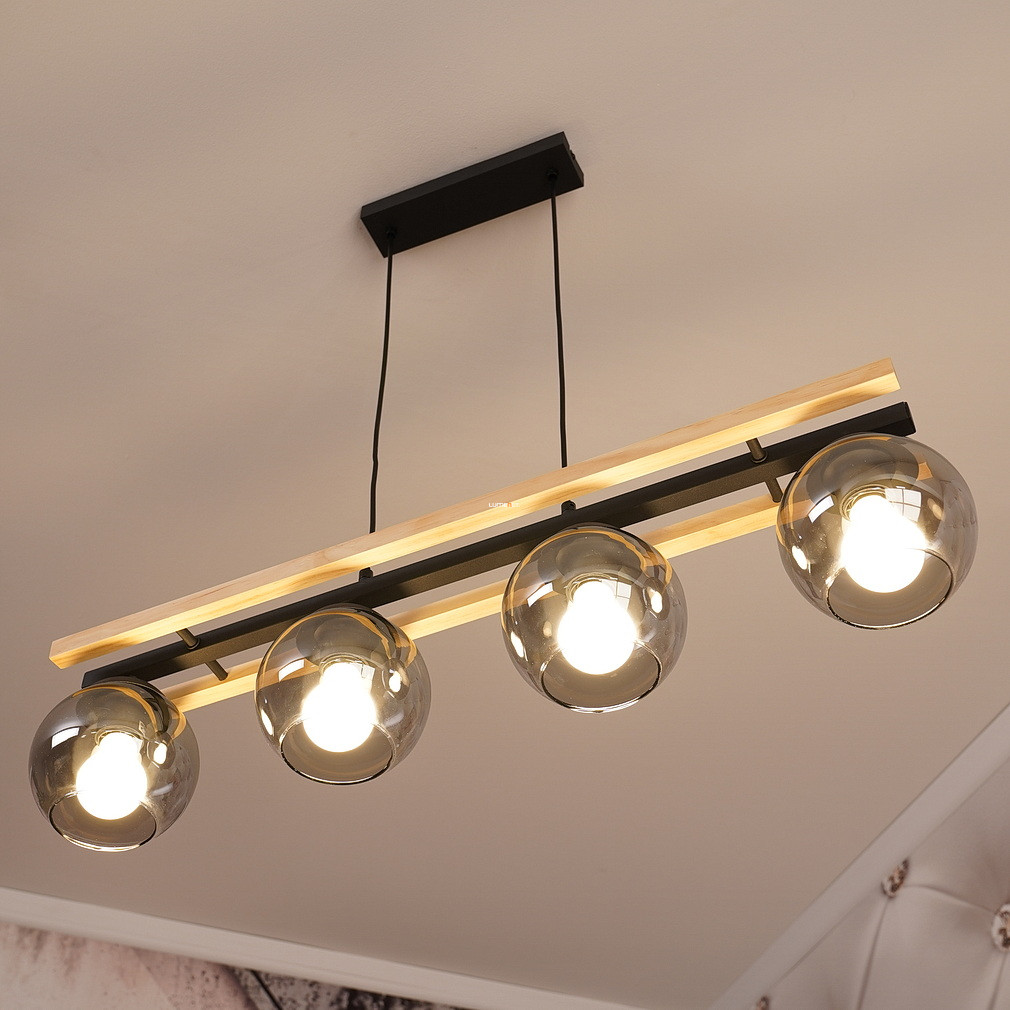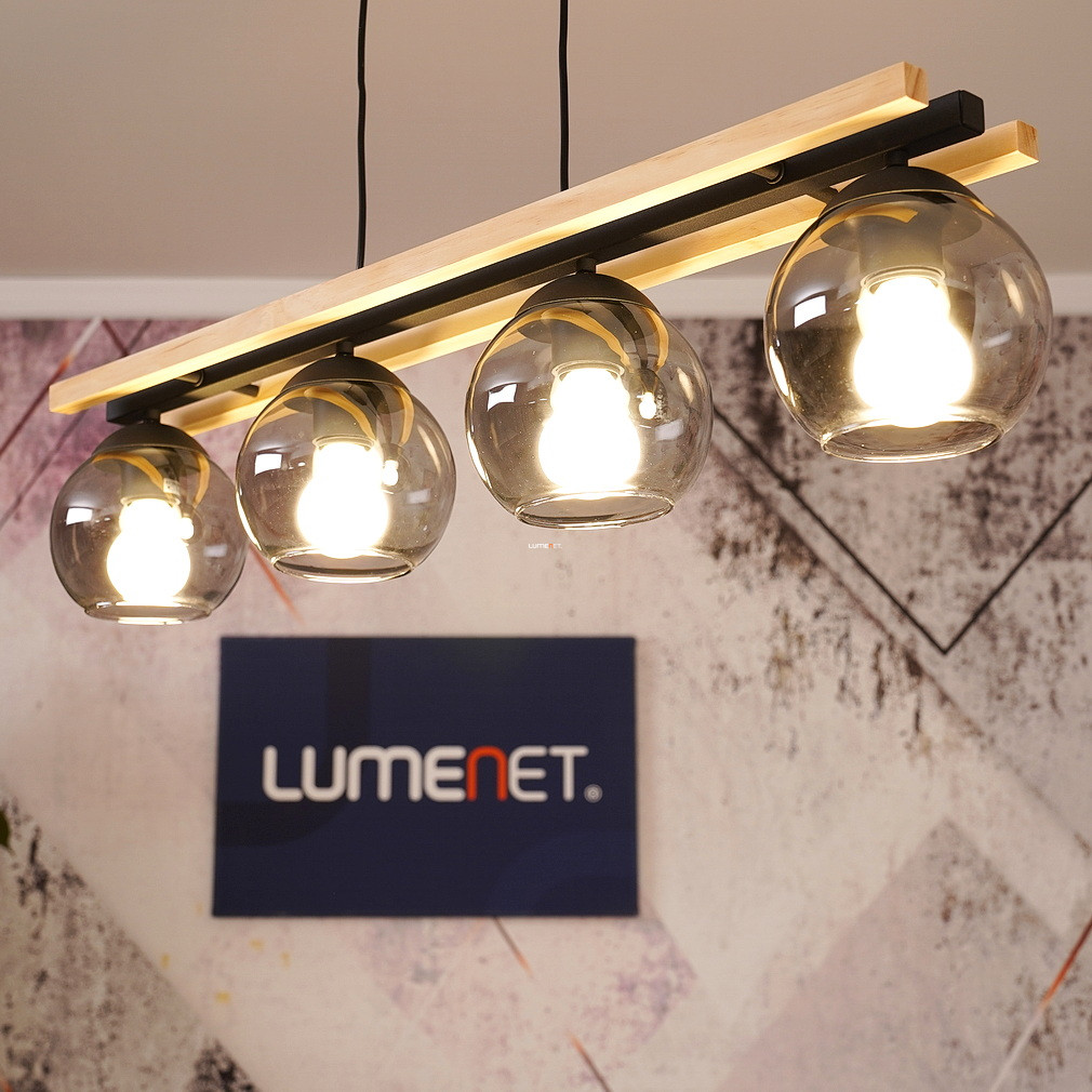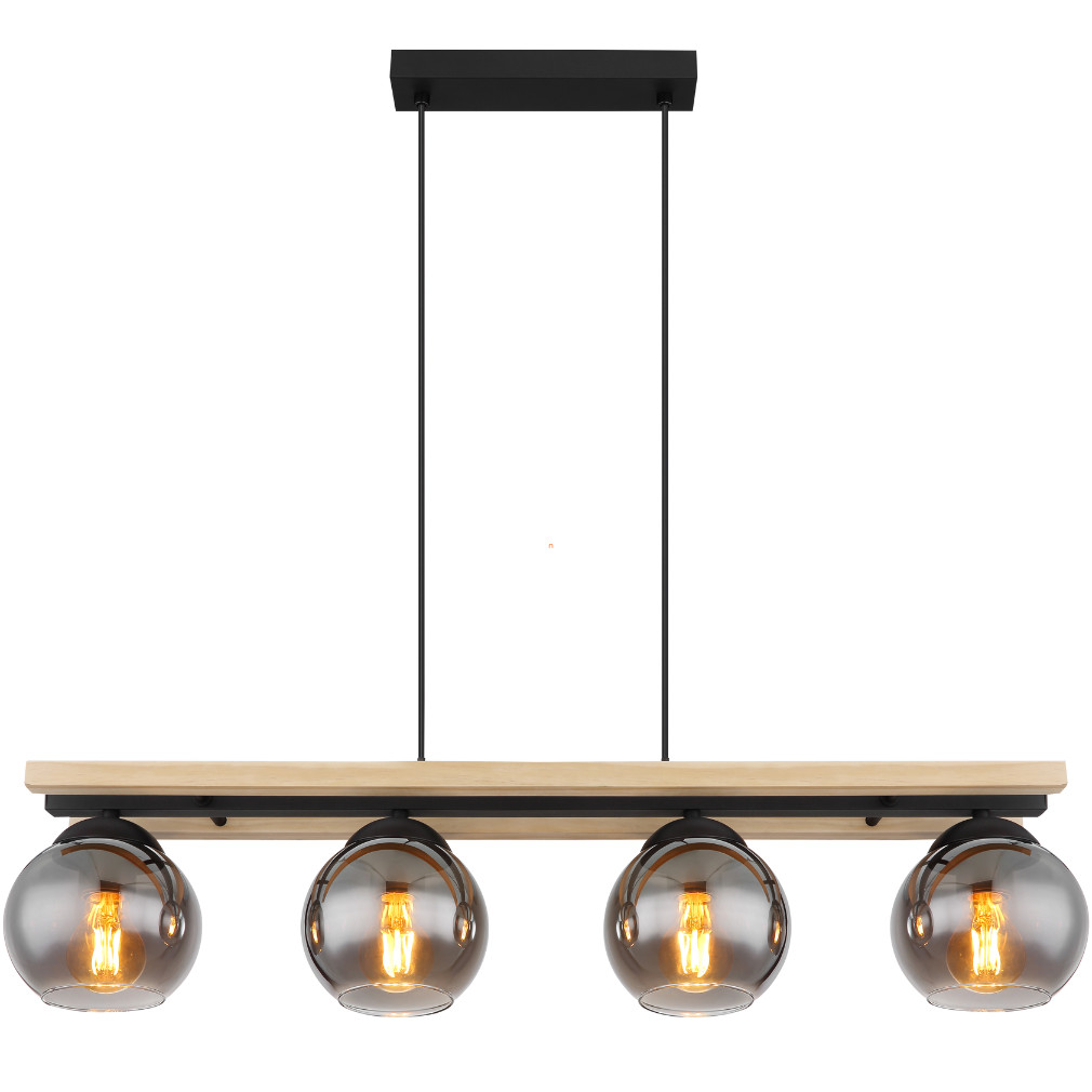 A Conni Globo 15569-4H füstszínű függesztett lámpa elegáns üveg és fém kombinációval készül, matt fekete és füstszínű felületekkel. A lámpatest négy E27 foglalattal rendelkezik, amelyekhez cserélhető fényforrások illeszthetők, így a fényáram, színhőmérséklet és teljesítmény szabadon választható. A termék 230 V névleges feszültségen működik, védettségi besorolása IP20, ezért beltéri használatra alkalmas. A lámpa méretei: 850 mm hosszúság, 150 mm szélesség és 1200 mm magasság, tömege 2,26 kg. A csomagolás méretei: 26 cm szélesség, 17 cm hosszúság és 81 cm magasság. A terméket a Globo. gyártja, a logisztikai kódja 15569-4H. A lámpatest nem tartalmaz fényforrást.