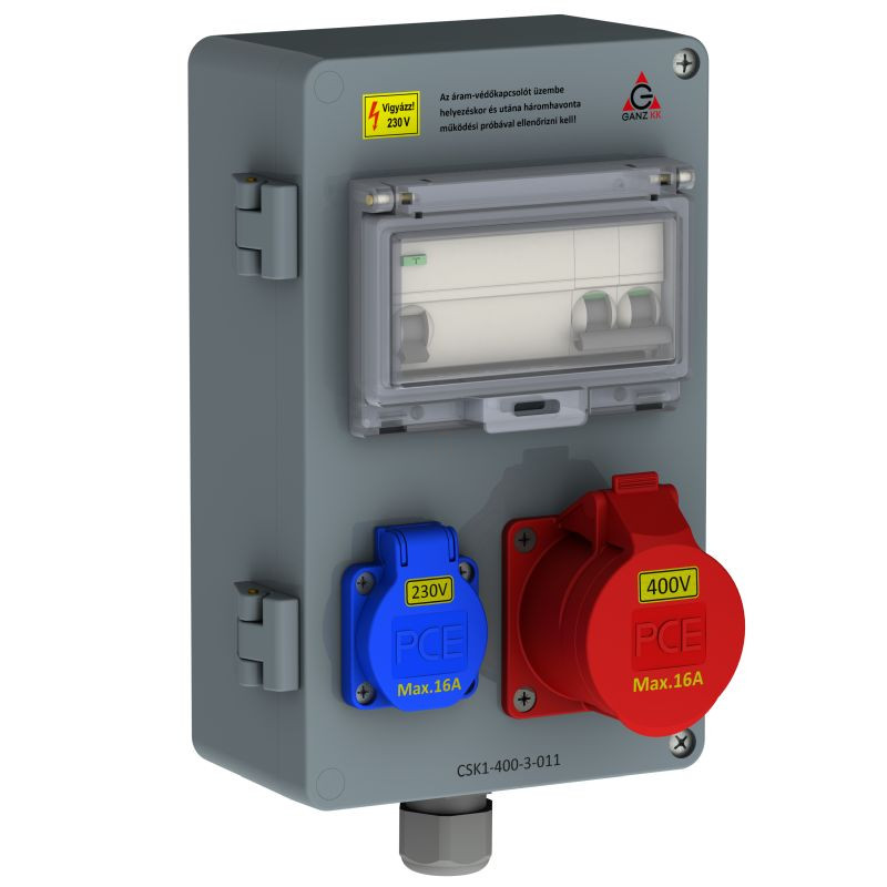 Ganz CSK1-400-1-011-32 Csatlakozó kombináció túláram védelemmel 1db 5P 16A, 1db 2P+N 16A 32A, 4111-4-101132