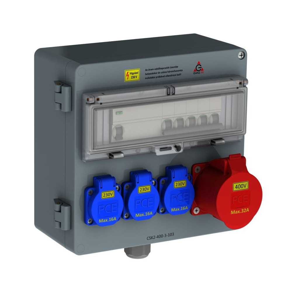 CSK2-400-0-103 Csatlakozó kombináció védelem nélkül 1db 5P 32A, 3db 2P+N 16A, 4112-4-010300 Ganz