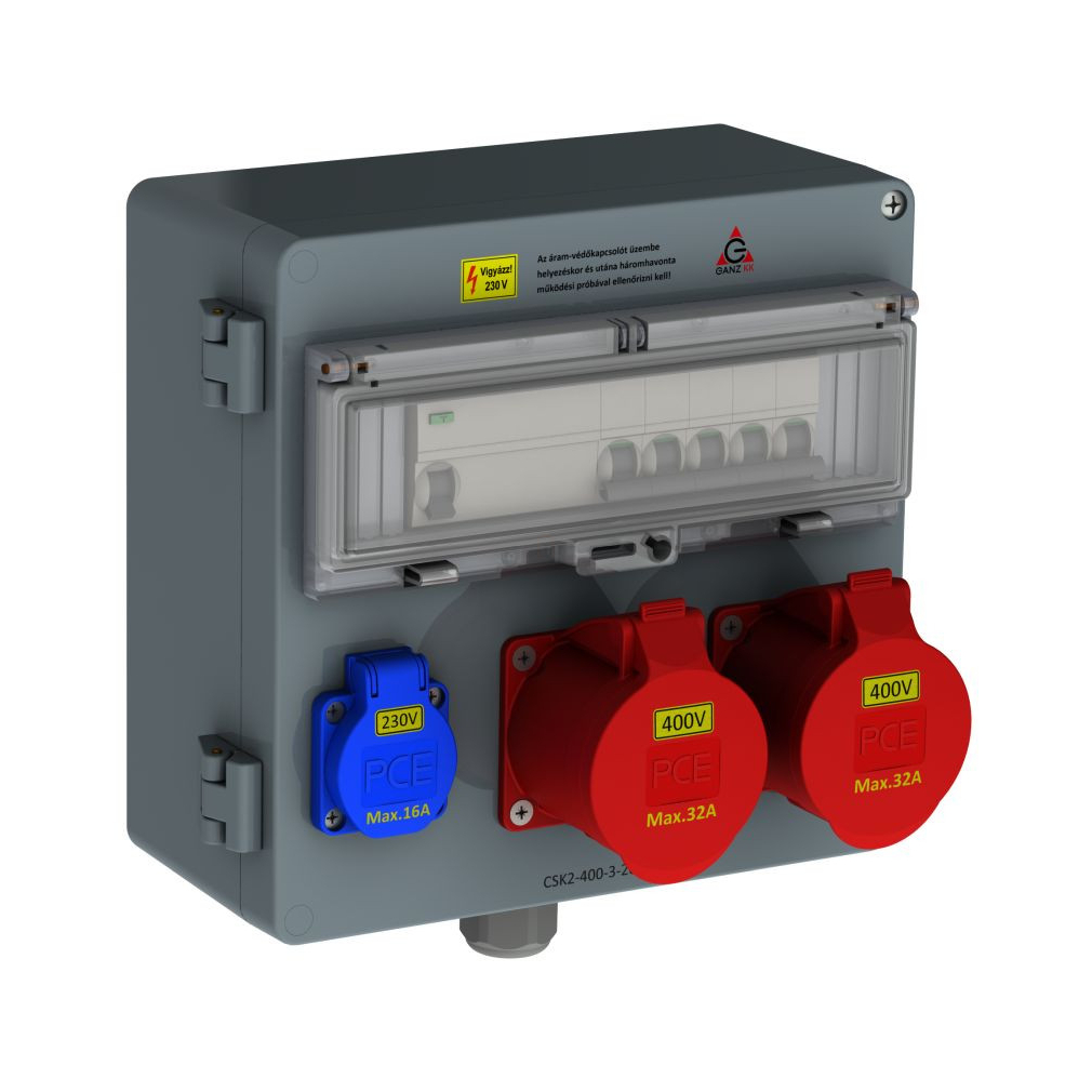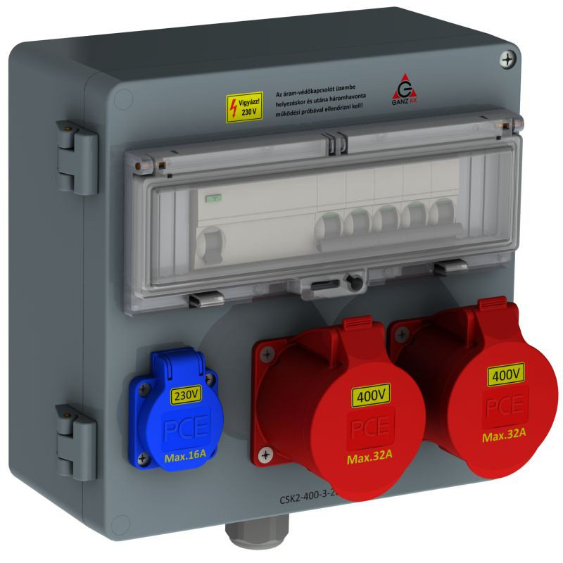 CSK2-400-2-201-16 Csatlakozó kombináció hibaáram védelemmel 2db 5P 32A, 1db 2P+N 16A 16A, 4112-4-220116 Ganz