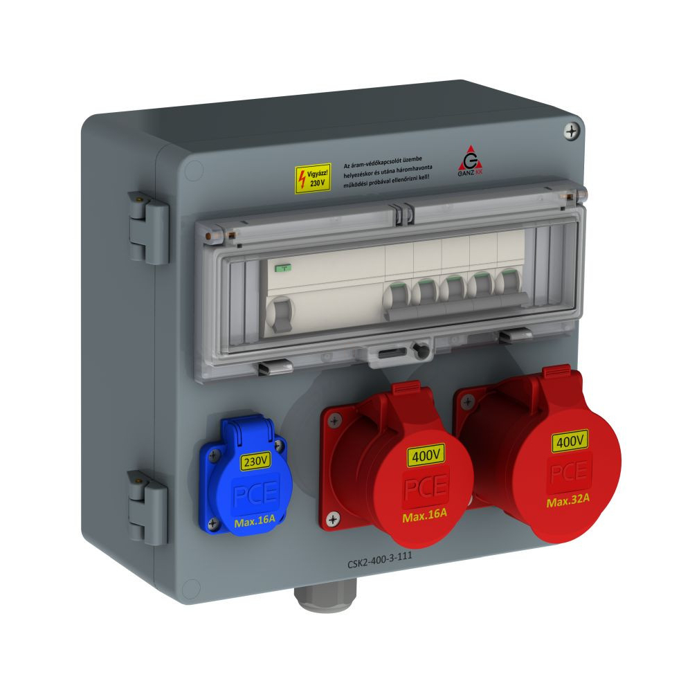 CSK2-400-3-111-32 Csatlakozó kombináció teljes védelemmel 1db 5P 32A, 1db 5P 16A, 1db 2P+N 16A 32A, 4112-4-311132 Ganz