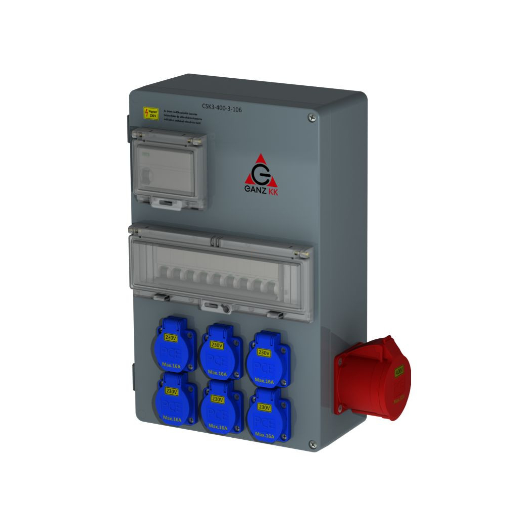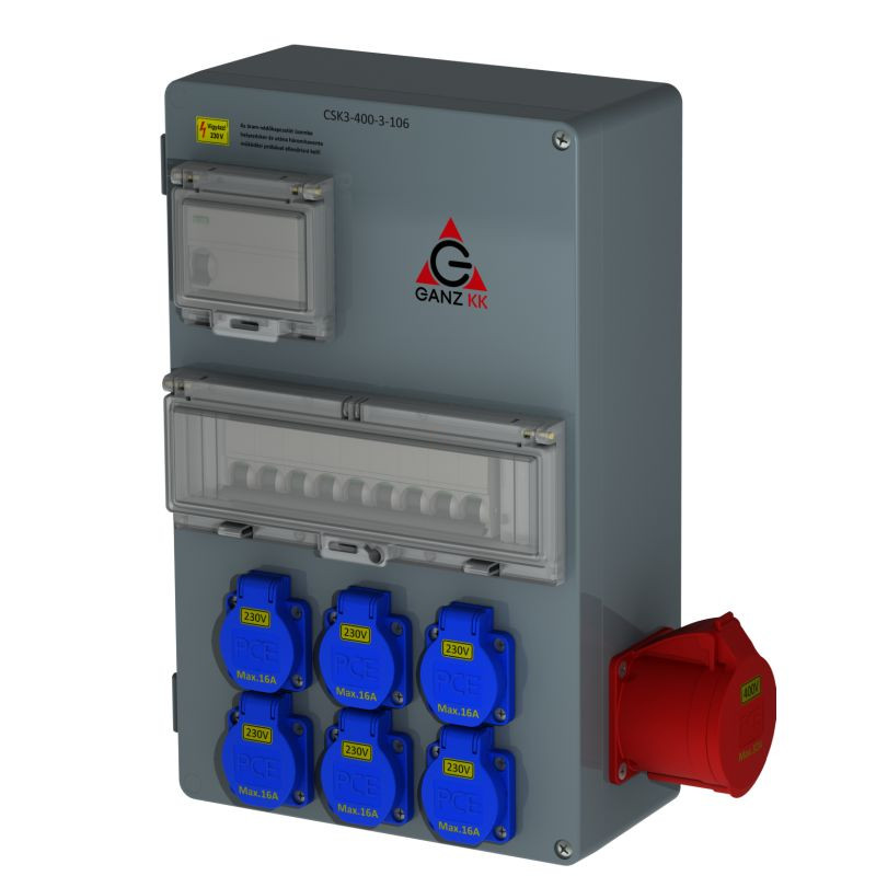 CSK3-400-3-106-32 Csatlakozó kombináció teljes védelemmel 1db 5P 32A, 6db 2P+N 16A 32A, 4113-4-310632 Ganz