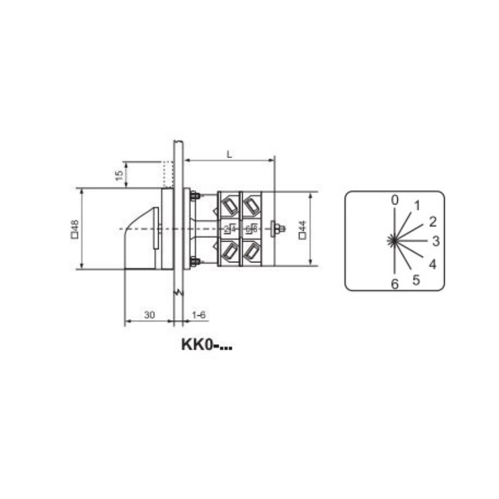 Ganz KK0-20-3700 Fokozatkapcsoló, fogantyús kézikapcsoló 20A, 0+6 fokozatú IP44, 1P