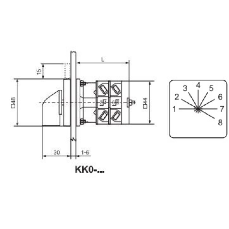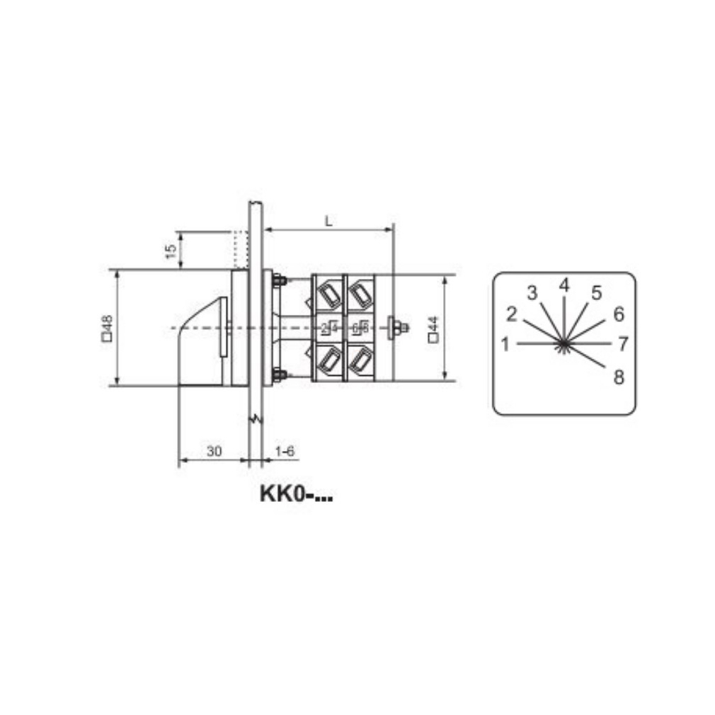 KK0-20-3819 Fokozatkapcsoló 0 állás nélkül, fogantyús kézikapcsoló 20A, 8 fokozatú IP44, 1P, Ganz