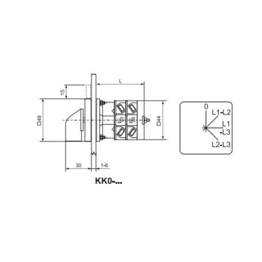 KK0-20-4033 Voltmérő átkapcsoló, fogantyús kézikapcsoló 20A, 3 vonali feszültségre IP44, Ganz