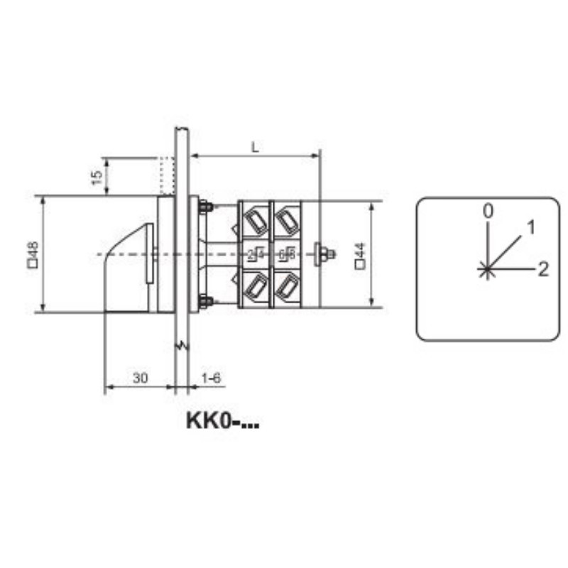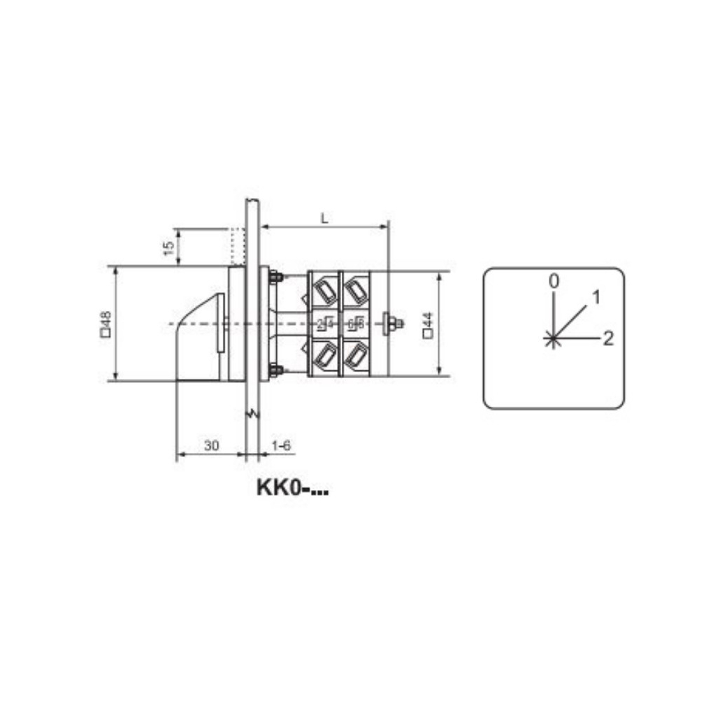 KK0-20-4482 Fokozatkapcsoló, fogantyús kézikapcsoló 20A, 0+2 fokozatú IP44, 3P, Ganz
