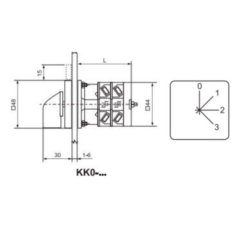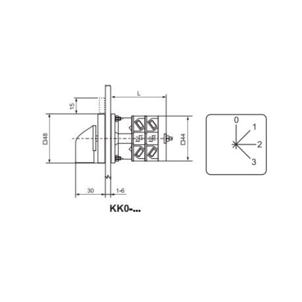 Ganz KK0-20-4485 Fokozatkapcsoló, fogantyús kézikapcsoló 20A, 0+3 fokozatú IP44, 3P