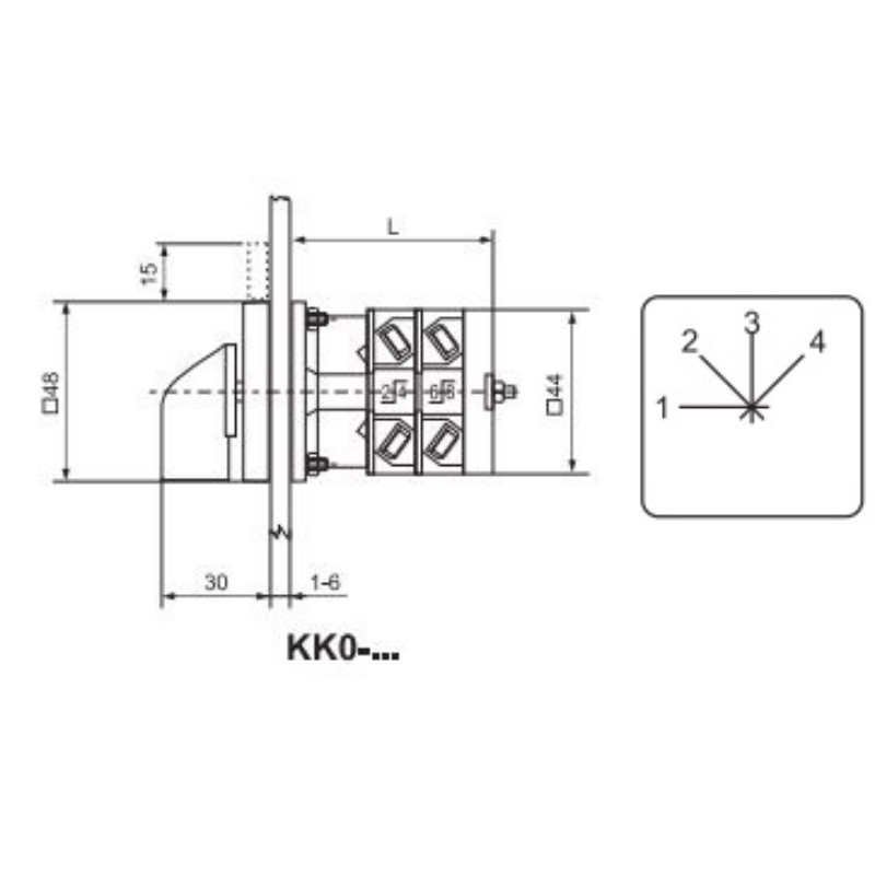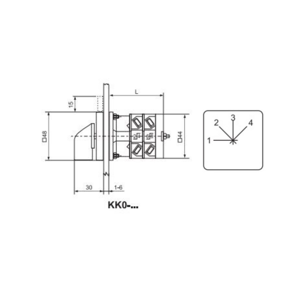 KK0-20-4489 Fokozatkapcsoló 0 állás nélkül, fogantyús kézikapcsoló 20A, 4 fokozatú IP44, 1P, Ganz