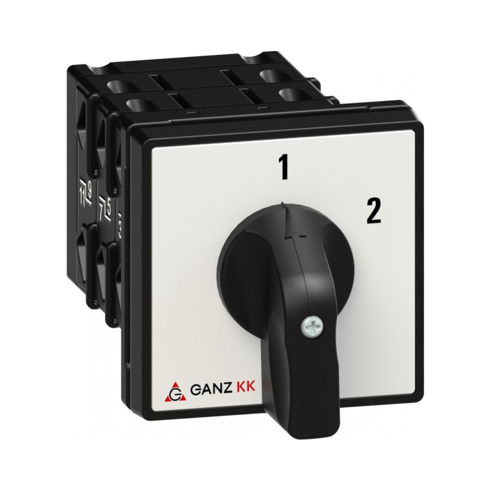 Ganz KK1-32-6004 Átkapcsoló 0 állás nélkül, fogantyús kézikapcsoló 32A, 1-2 felirat, IP44, 3P