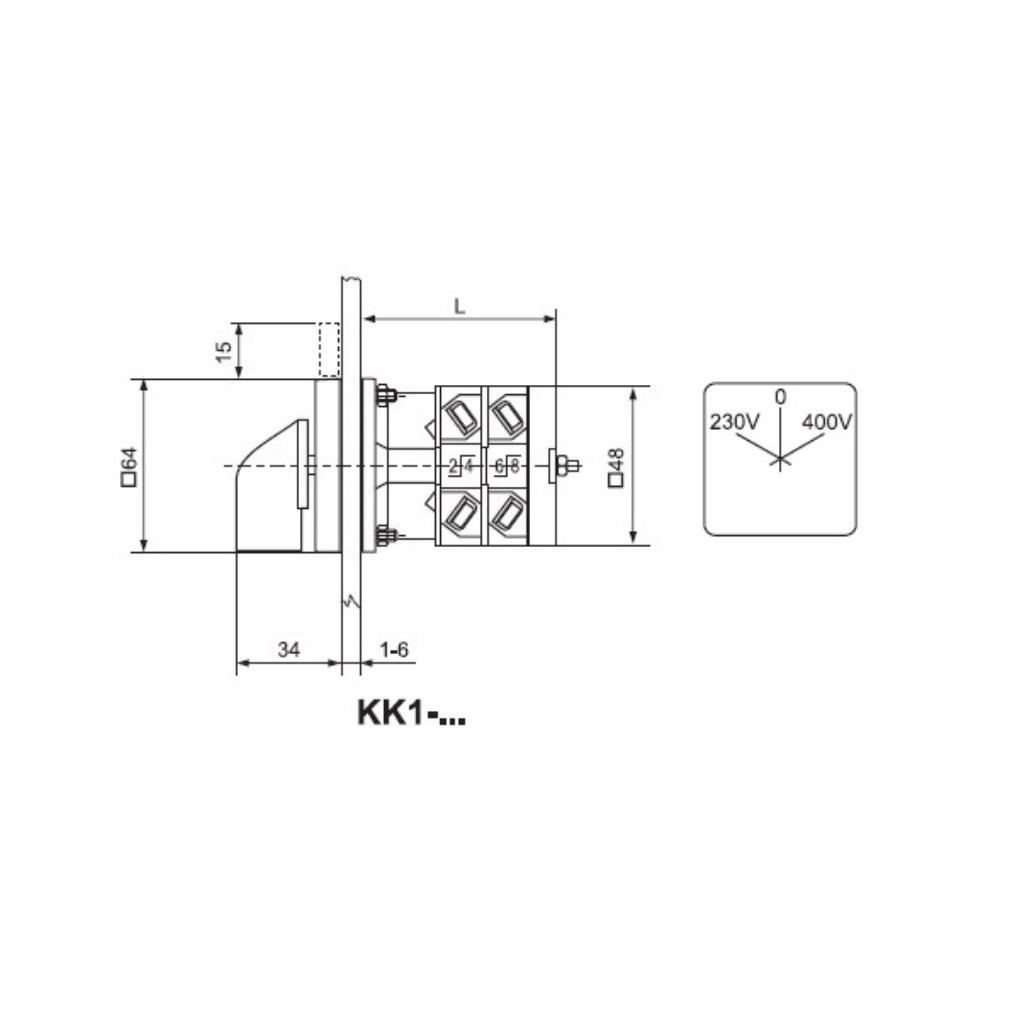 KK1-32-6066 Átkapcsoló, fogantyús kézikapcsoló 32A, 230V-0-400V IP44, 2P, Ganz