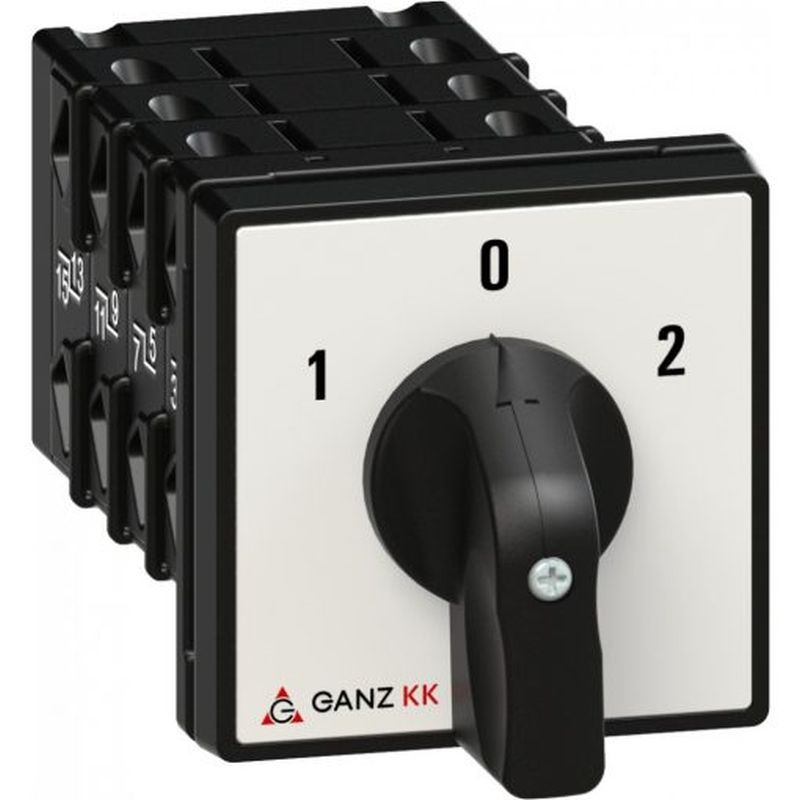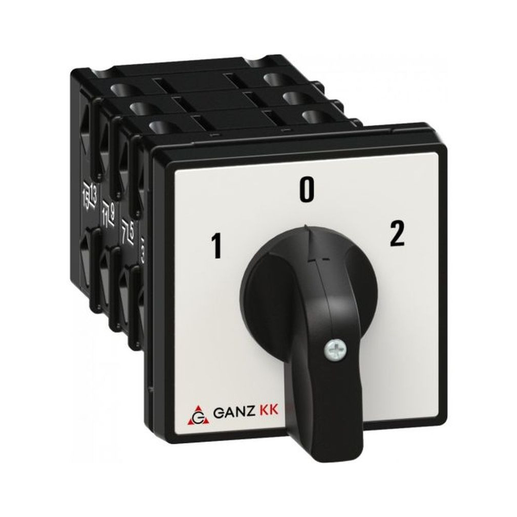 Ganz KK1-32-6129 H Átkapcsoló 0 állással, fogantyús kézikapcsoló 32A, 1-0-2 felirat, IP44, 4P, hátsó felerősítés