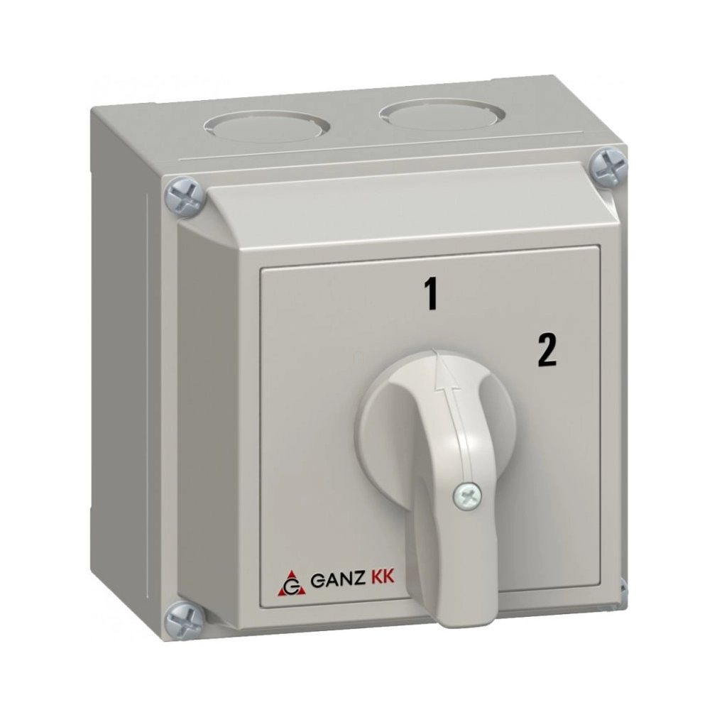 Ganz KKM0-20-6003 Átkapcsoló 0 állás nélkül, tokozott kézikapcsoló 20A, 1-2 felirat, IP65, 2P