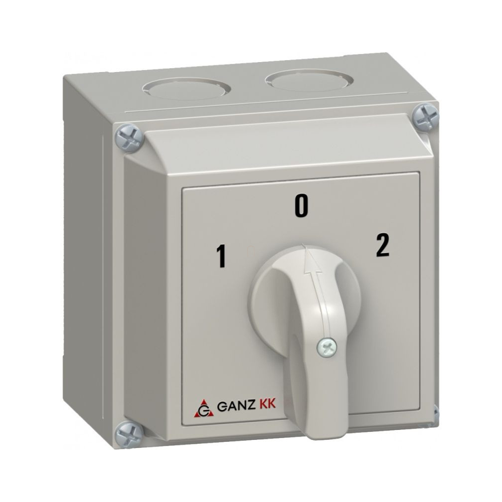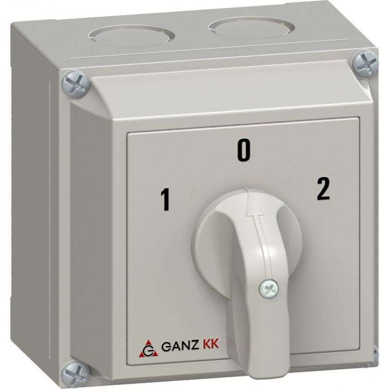 Ganz KKM0-20-6005 Átkapcsoló 0 állással, tokozott kézikapcsoló 20A, 1-0-2 felirat, IP65, 2P
