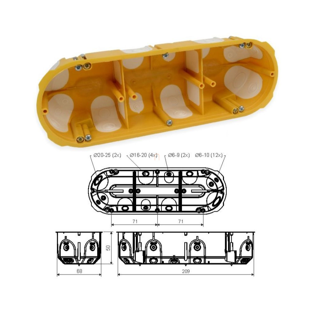 Gipszkarton doboz 3-as, 49mm mély, sárga, légtömített KPL 64-50/3LD NA Kopos
