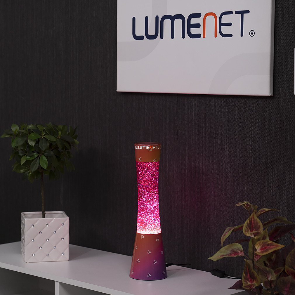 Glitteres lávalámpa fényforrással, rózsaszín, 39 cm - Minka Rábalux 7027, 1xGY6.35 foglalattal