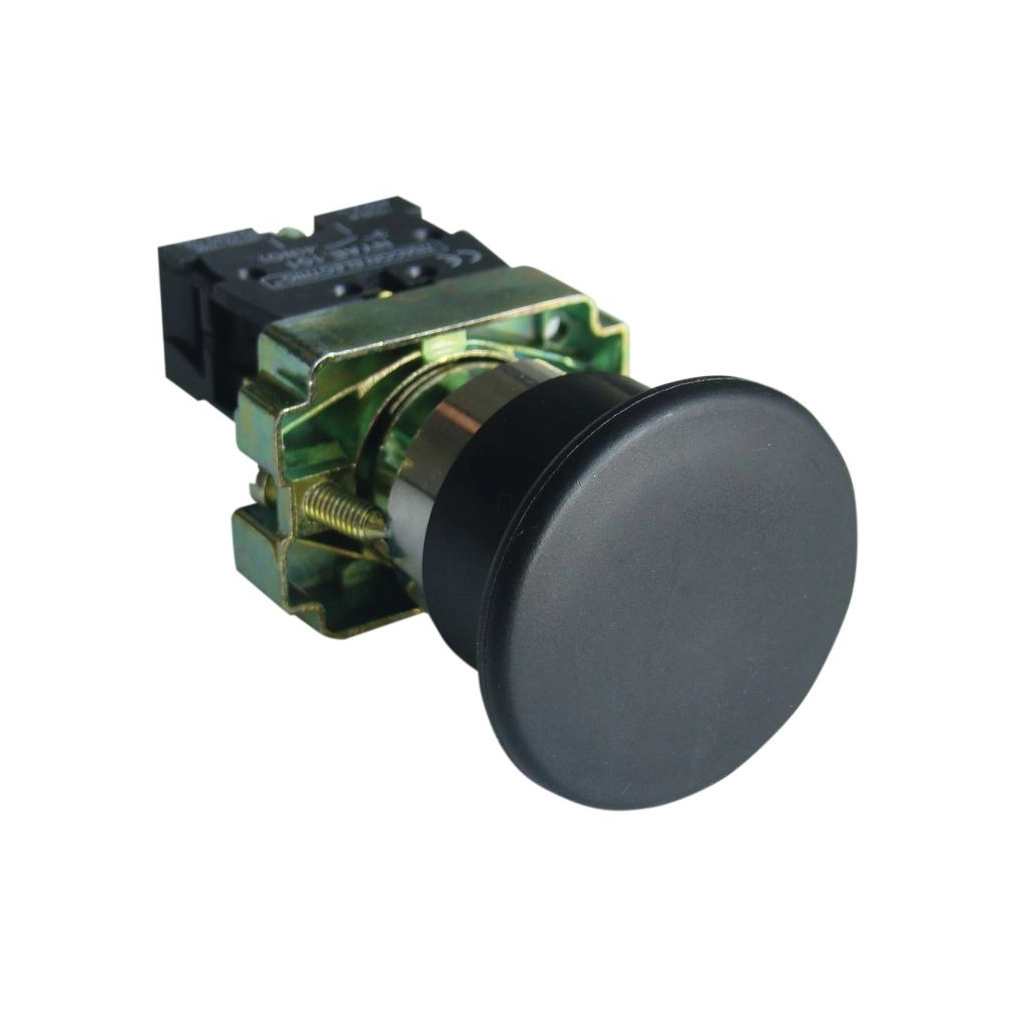 Gombafejű nyomógomb, fémalapra szerelt, fekete 1×NO, 3A d=40mm IP42 NYGBC21 Tracon