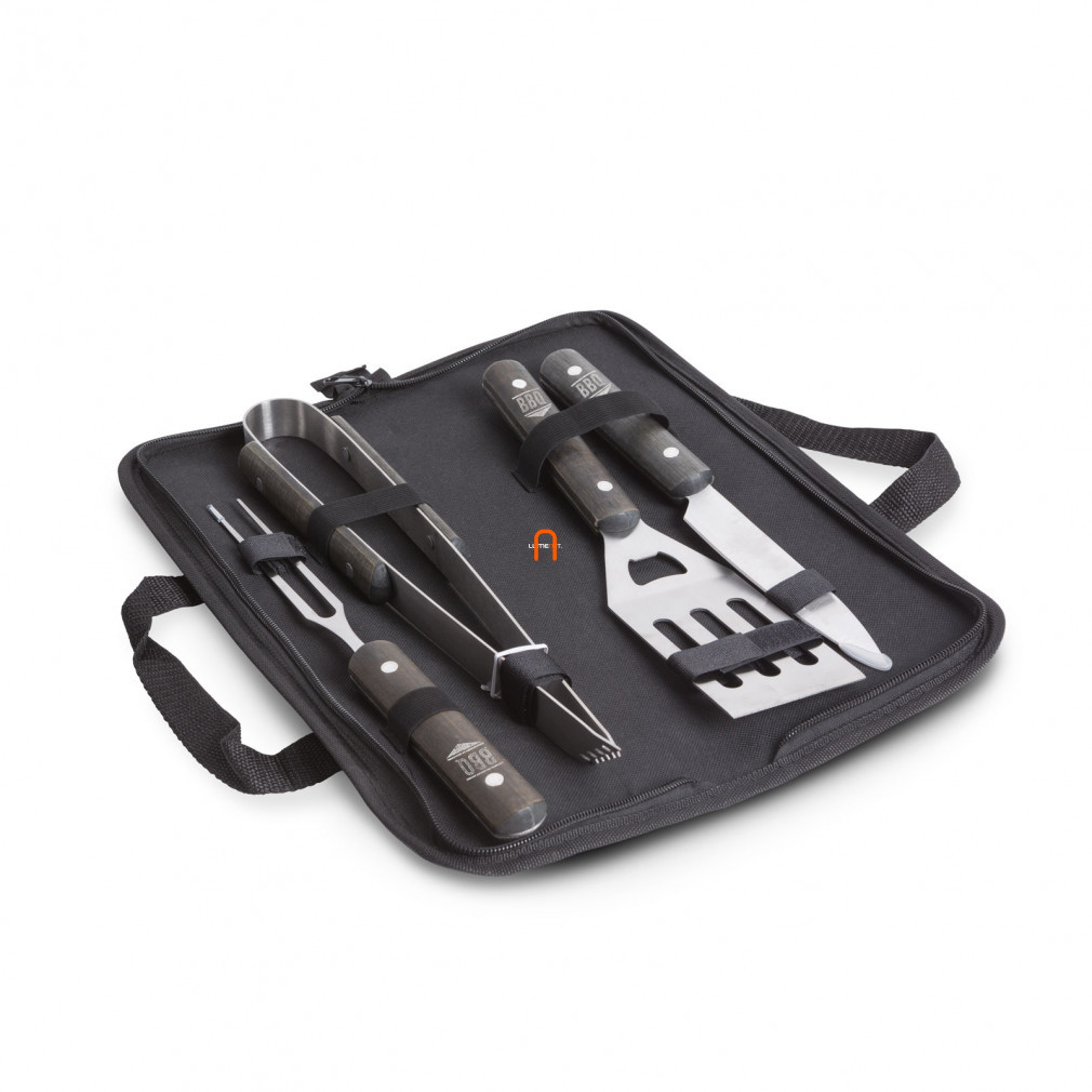 A nyári grillezések elengedhetetlen kelléke ez a grillező eszközszett. Alkalmas húsok, zöldségek forgatására, szervírozására. A kiváló minőségű, vastag, acél fejeknek köszönhetően a grillezett hús könnyen kezelhető lesz. A szett tartalmaz minden olyan eszközt, amelyre a grillezés során szüksége lehet. A tartozék táska könnyű hordozhatóságot és sérülésmentes tárolást biztosít.