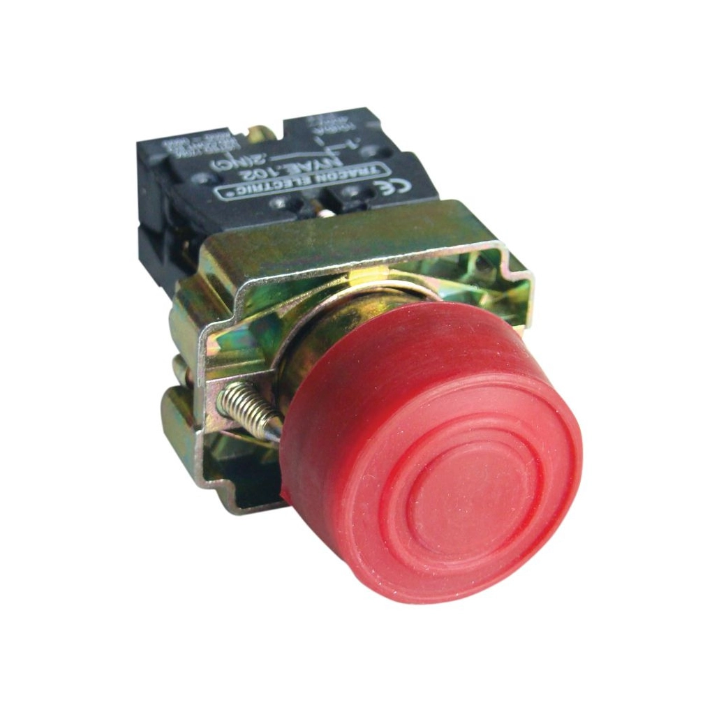 Gumiburkolatos nyomógomb, fémalapra szerelt, piros 1×NO, 3A/240V AC, IP42, d=22mm NYGBP42P Tracon