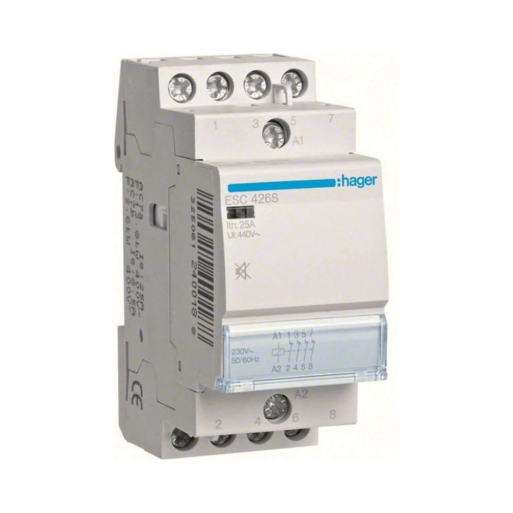 HAGER ESC426S mágneskapcsoló,csendes, 4NY, 25A, 230V AC, moduláris