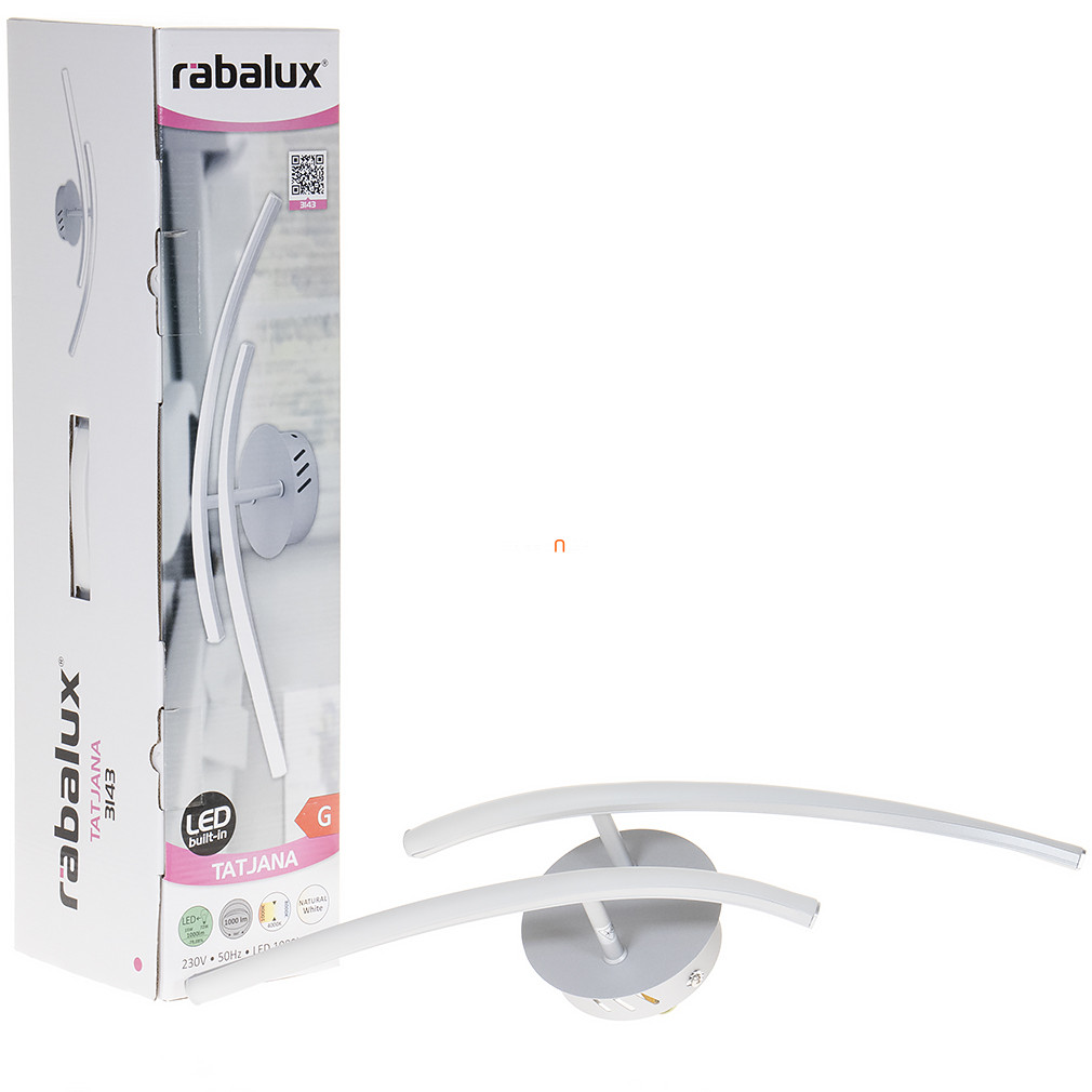 A Tatjana Rábalux 3143 hajlított mennyezeti LED lámpa modern designnal és energiatakarékos technológiával készült. A lámpatest 15 W teljesítményű integrált LED modullal rendelkezik, amely 1000 lumen fényáramot biztosít hidegfehér, 4000 K színhőmérsékletű fényben. A termék fő anyaga fém és műanyag, színe ezüst és fehér, így jól illeszkedik letisztult, modern enteriőrökbe. A lámpa IP20 védettséggel rendelkezik, amely beltéri használatra teszi alkalmassá. Átlagos élettartama 15 000 óra, méretei 540 mm hosszú, 120 mm széles és 110 mm magas. A LED fényforrás a termék része, külön izzót nem igényel. A lámpa tömege 0,76 kg, csomagolási méretei 57x16x13 cm. A terméket a Rábalux gyártja, minőségi világítástechnikai megoldást kínálva lakóterek számára.