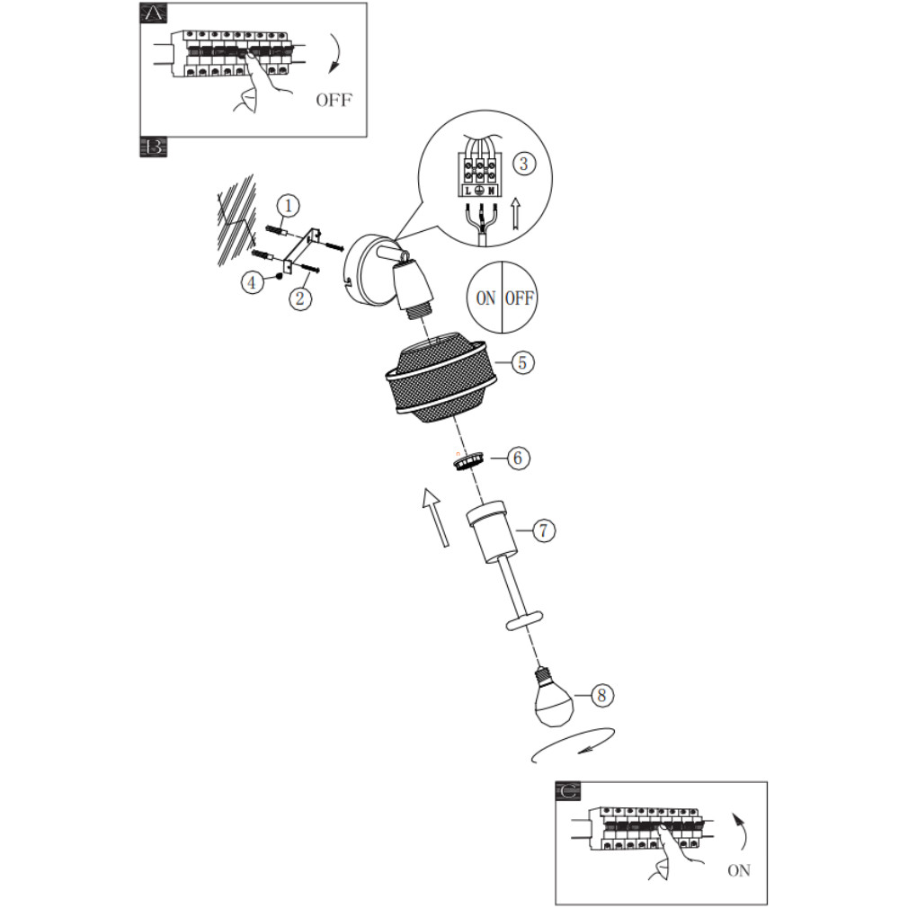 Fali lámpa cserélhető fényforrással