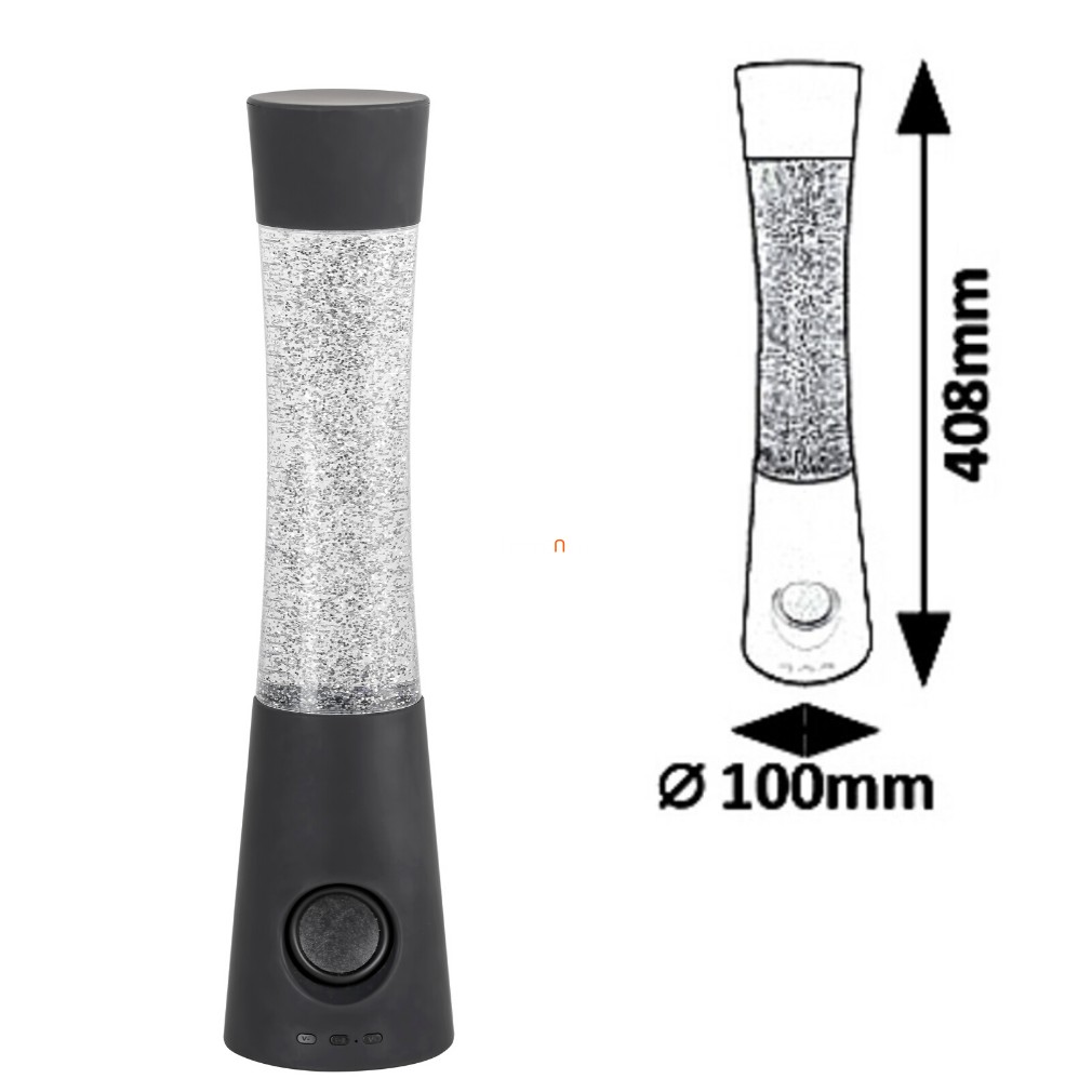 A Carnival Rábalux 6949 hangszórós dekor lámpa glitterrel egy modern stílusú, 40,8 cm magas lakásvilágítási megoldás, amely változtatható színű (RGB) LED modullal működik. A lámpatest fekete színű, műanyagból készült, és 5 W névleges teljesítményt biztosít. A beépített bluetooth hangszóróval rendelkező készülék akkumulátorról (DC5V) üzemeltethető, IP20 védettséggel rendelkezik, így elsősorban beltéri használatra ajánlott. A termék csomagolási méretei 12 x 12 x 44 cm, tömege 1,22 kg. A lámpa glitteres díszítése és RGB fényforrása révén vizuális élményt nyújt, miközben zenelejátszásra is alkalmas.