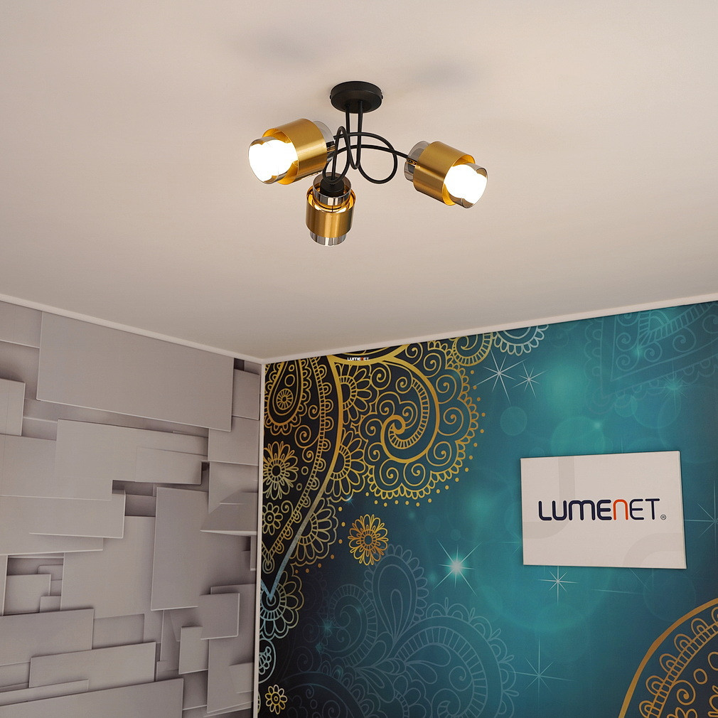 Három karos mennyezeti lámpa sárgaréz színben - Milley Globo 15560-3D