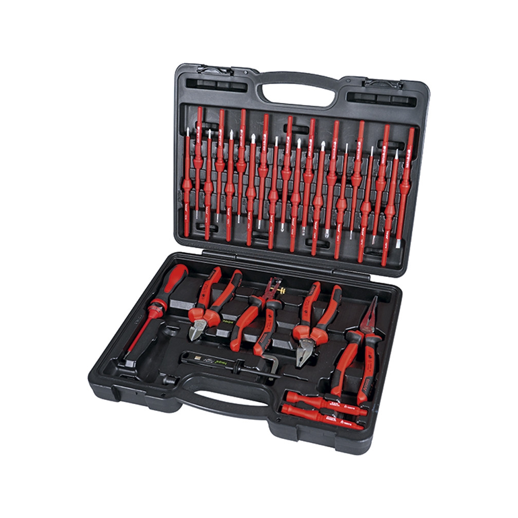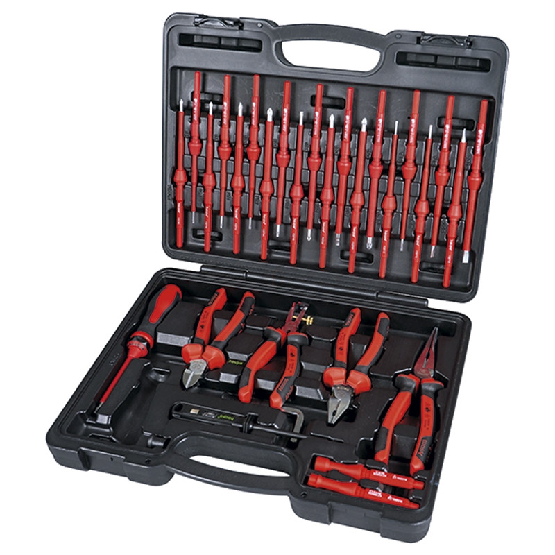 „VarioPro“ szigetelt cserélhető pengékkel, kapcsolószekrény kulcs rendszerbe integrálva, fogókészlet VDE és VDE/GS fázisceruzák.