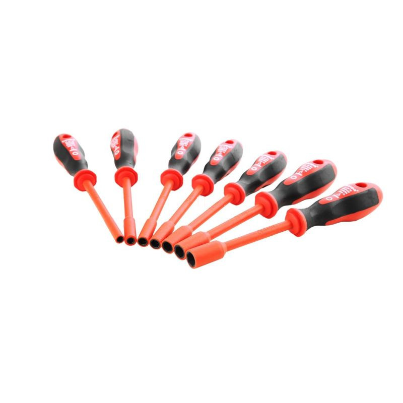 \nDugókulcs készlet DIN 74452-komponensű nyéllel, PP/TPE -anyagból, a penge molibdén-vanádium-acélból, edzve, besugározva, darabonként bevizsgálva. Tartalma: 5 - 5,5 - 7 - 8 - 10 - 11 - 13 mm
