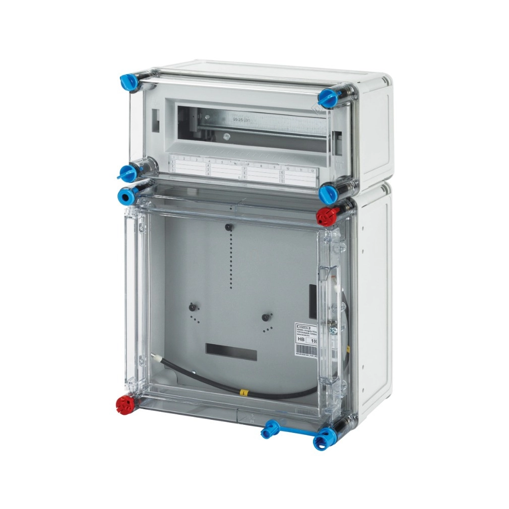 Hensel BASIC HB1012F-E Eon területre egyfázisú, egy mérőhelyes mérőszekrény mindennapszaki (általános) vagy előre fizetős mérésre 40A, FELSŐ 12 modulos fogyasztói kiselosztóval,