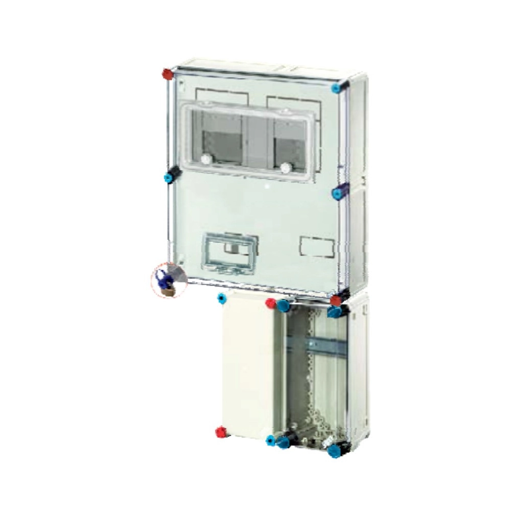 Hensel BASIC HB33KAFFF8-E Eon területre, ÁLLÓ egy- és háromfázisú, két mérőhelyes mérőszekrény mindennapszaki (általános) és előre fizetős mérésre 40A (1F), ill. 63A (3F), valamint egyfázisú vezérelt és vezérelt előre fizetős mérésre mérésre 40A (1F), ill. 63A (3F), földkábeles csatlakozással, 3 szekrényes, 2x4modul kiselosztó a kábelfogadóban
