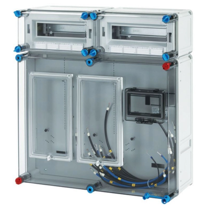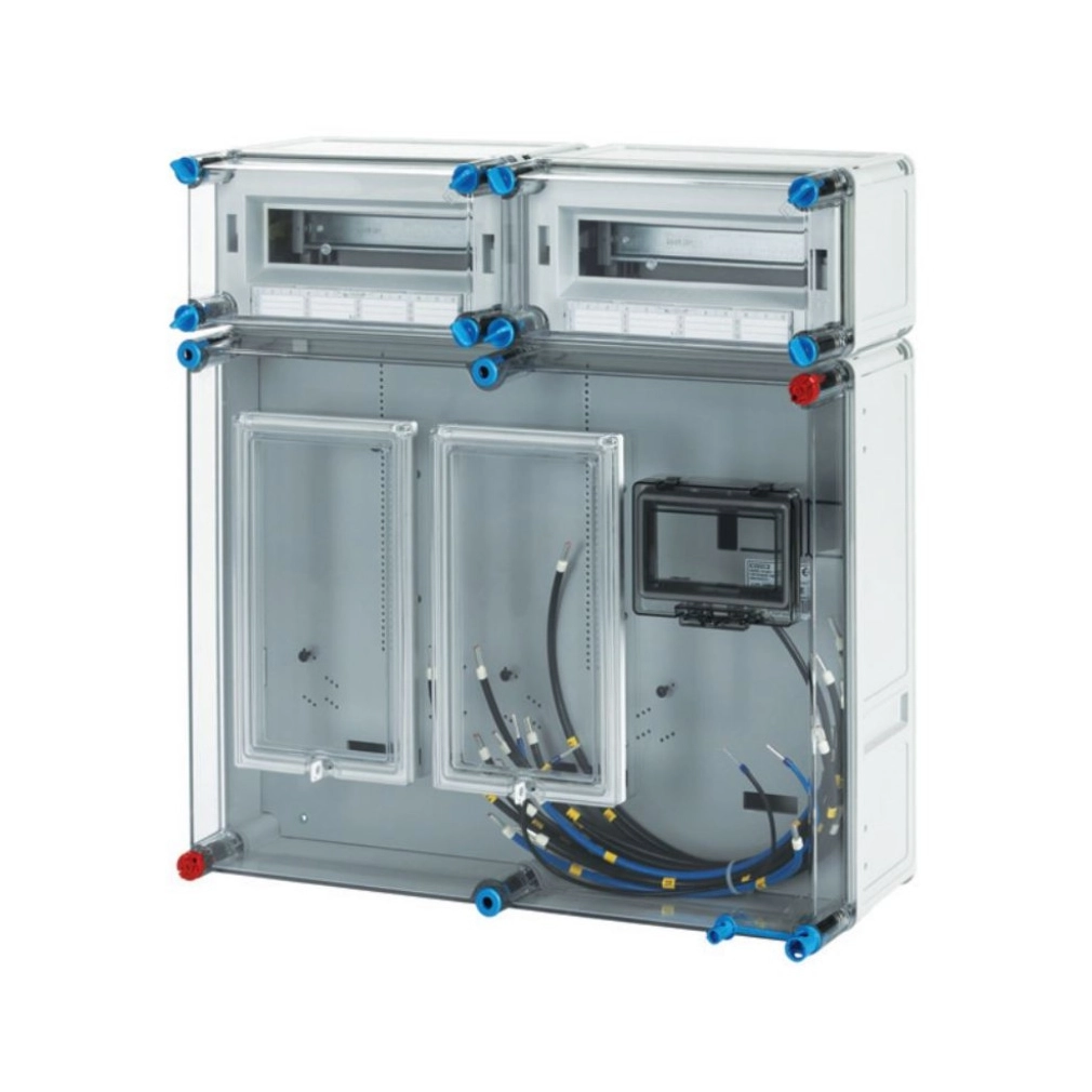 Hensel BASIC HB33KF24F-E Eon területre, FEKVŐ egy- és háromfázisú, két mérőhelyes mérőszekrény mindennapszaki (általános) és előre fizetős mérésre 40A (1F), ill. 80A (3F), valamint egyfázisú vezérelt és vezérelt előre fizetős mérésre 40A (1F), ill. 63A (3F), FELSŐ 2x12 modulos fogyasztói kiselosztóval