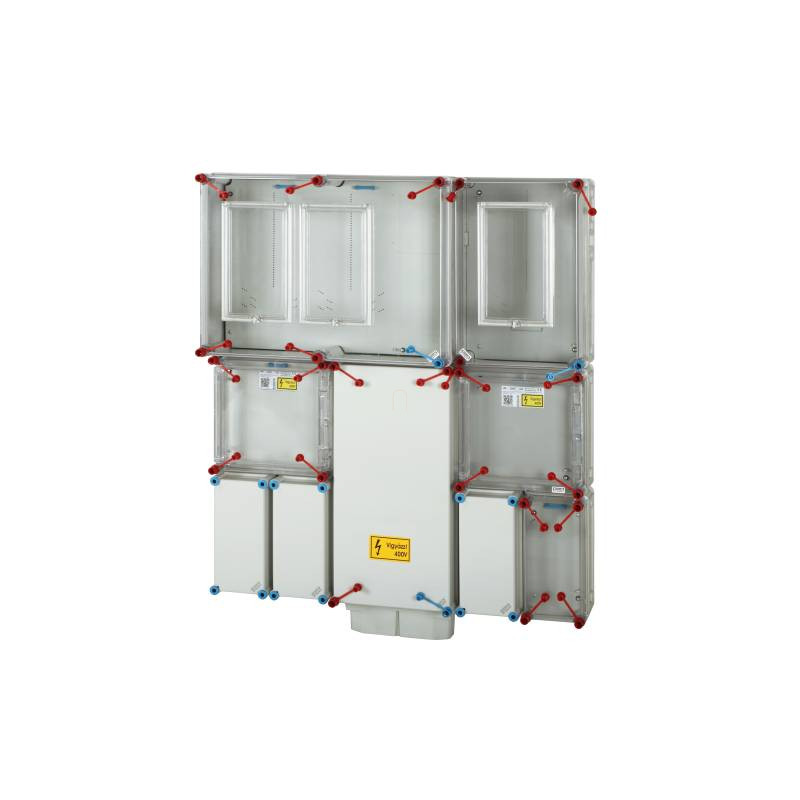 Hensel HB333KF-U fogyasztásmérő szekrény, 1 vagy 3 fázisú általános és vezérelt és H-tarifás méréshez, földkábeles csatlakozás 80A mindennapszaki és 32A vezérelt és 63A H-tarifa