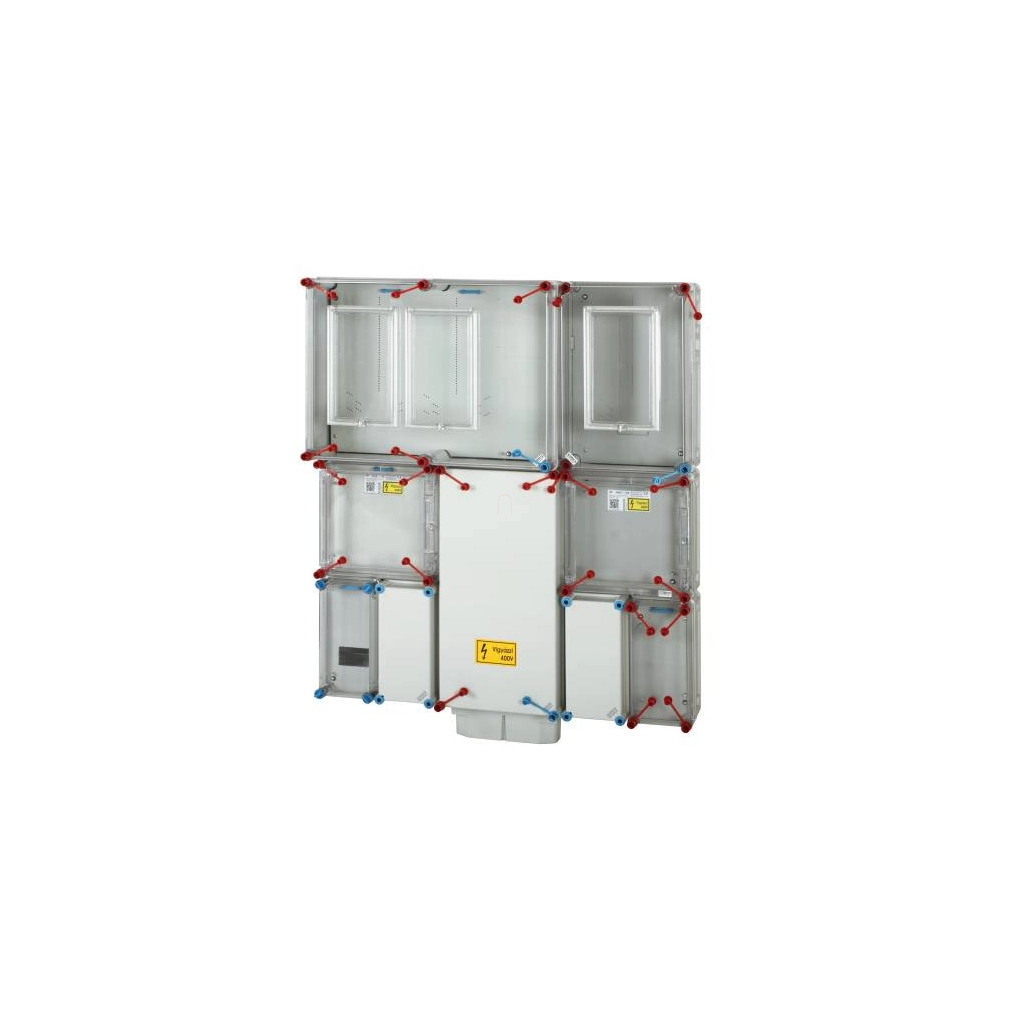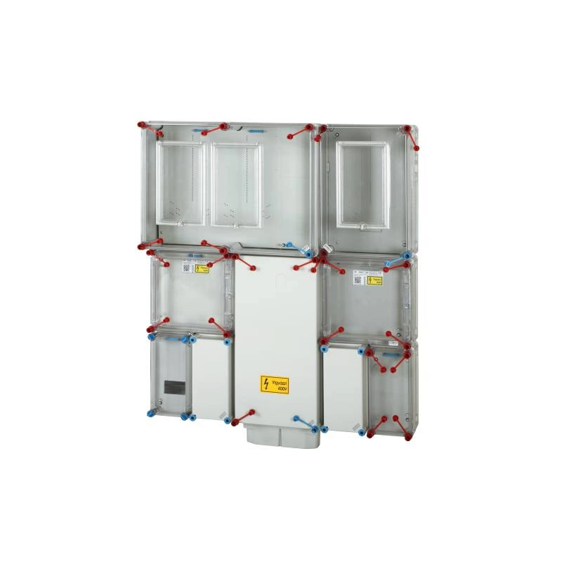 Hensel HB333KF4-U fogyasztásmérő szekrény, 1 vagy 3 fázisú általános és vezérelt és H-tarifás méréshez, földkábeles csatlakozás, 4 modulos kiselosztó 80A mindennapszaki és 32A vezérelt és 63A H-tarifa