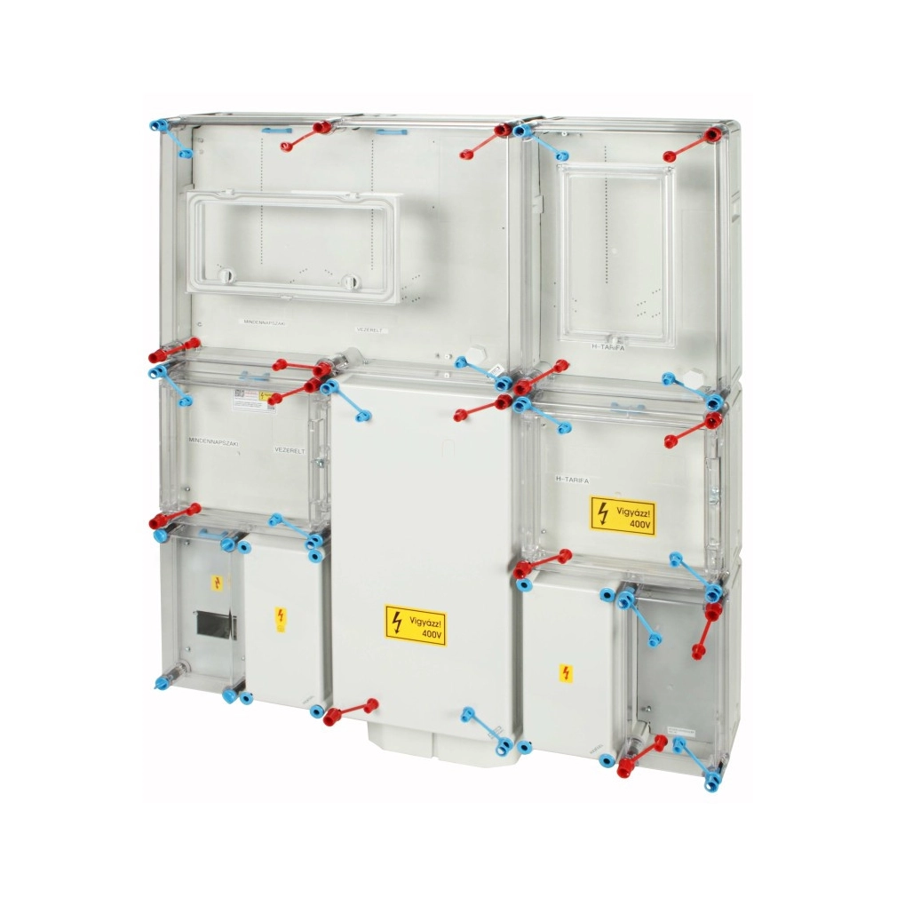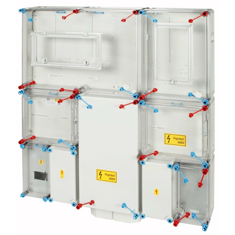 Hensel HB333KF4-U1 fogyasztásmérő szekrény, 1 vagy 3 fázisú általános és vezérelt és H-tarifás méréshez, földkábeles csatlakozás, 4 modulos kiselosztó 80A mindennapszaki és 32A vezérelt és 63A H-tarifa
